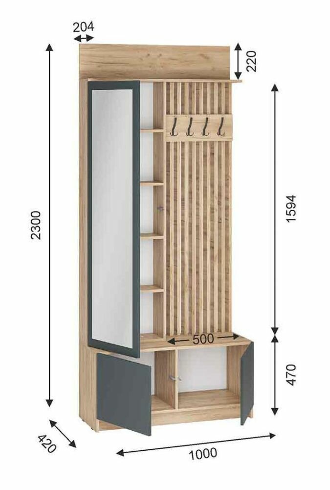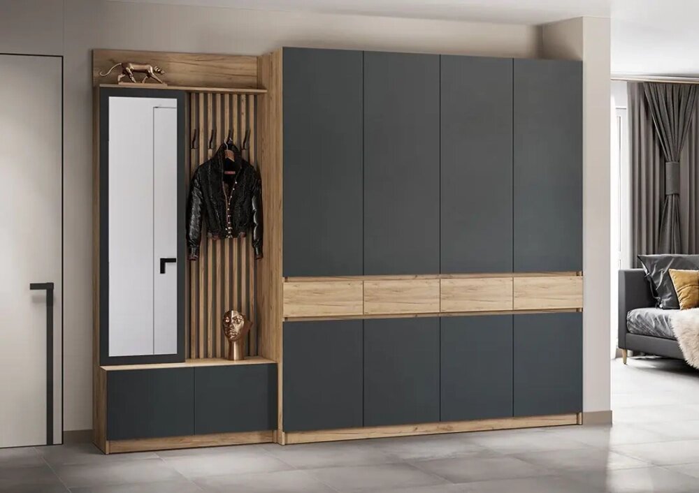 Модульная прихожая Стоуби дизайн 10 (дуб крафт золотой/серый графит) информация: