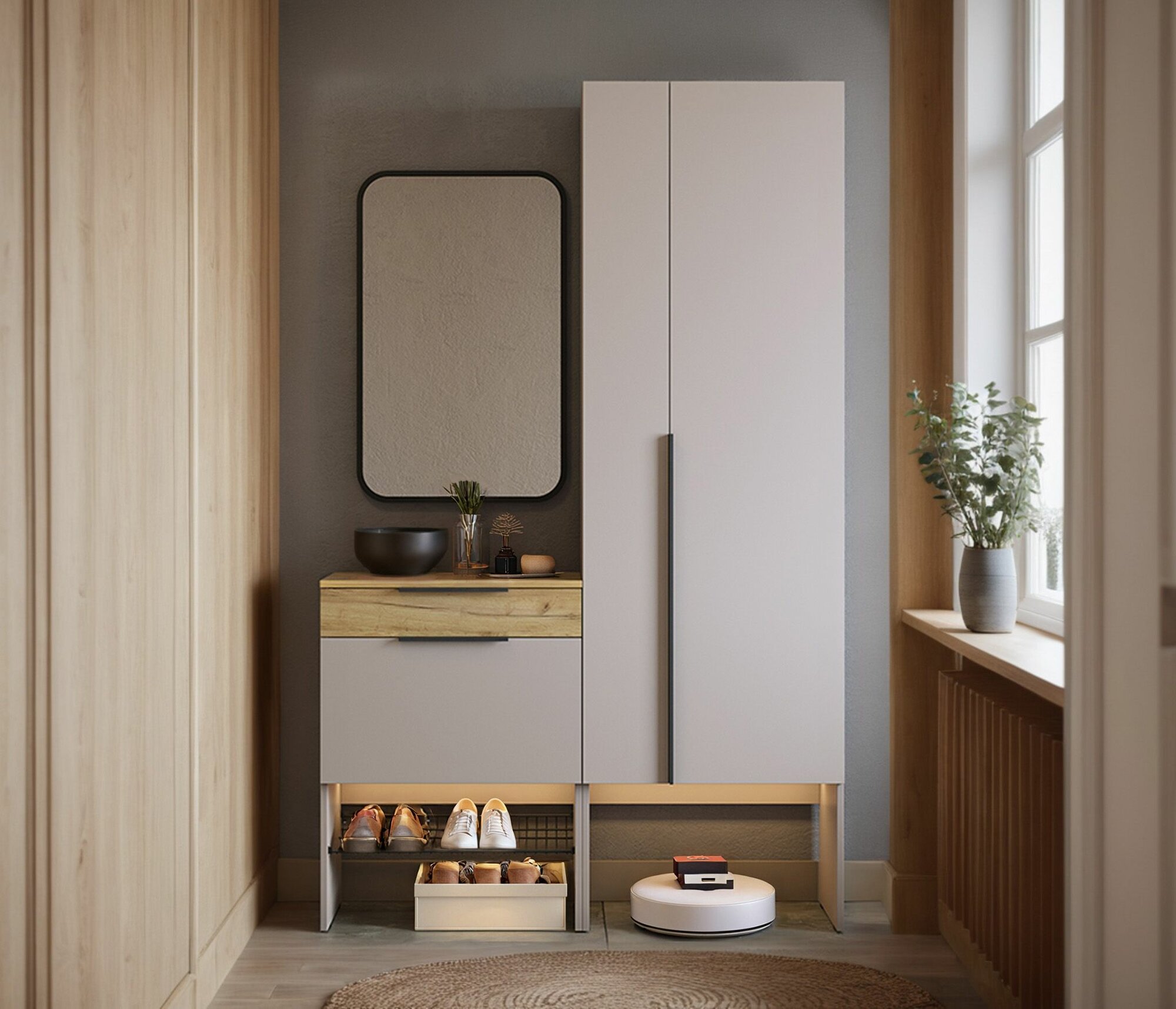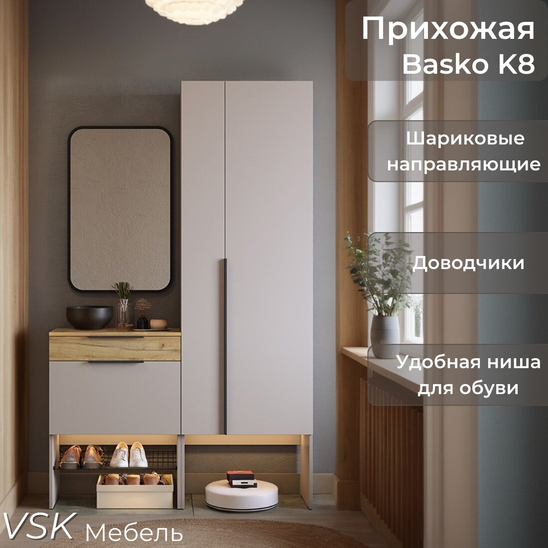 Отзывы на Прихожая Basko К8, комплект мебели в прихожую, Кашемир/дуб крафт золотой/черный, 120,2х195х34,9 см (ШхВхГ)