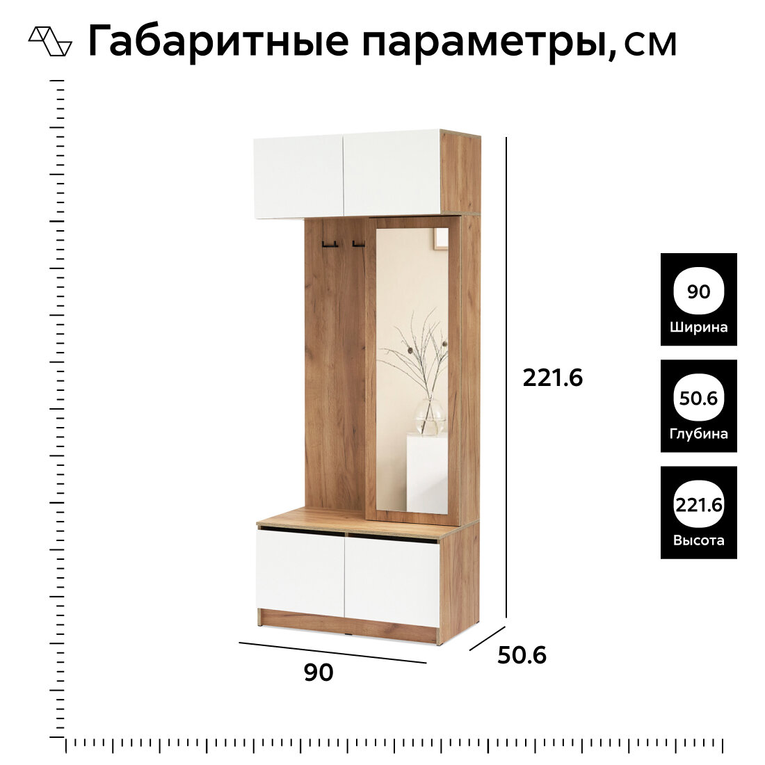 Прихожая с зеркалом Нонтон Веллум, дуб крафт золотой / белый, 90 см информация: