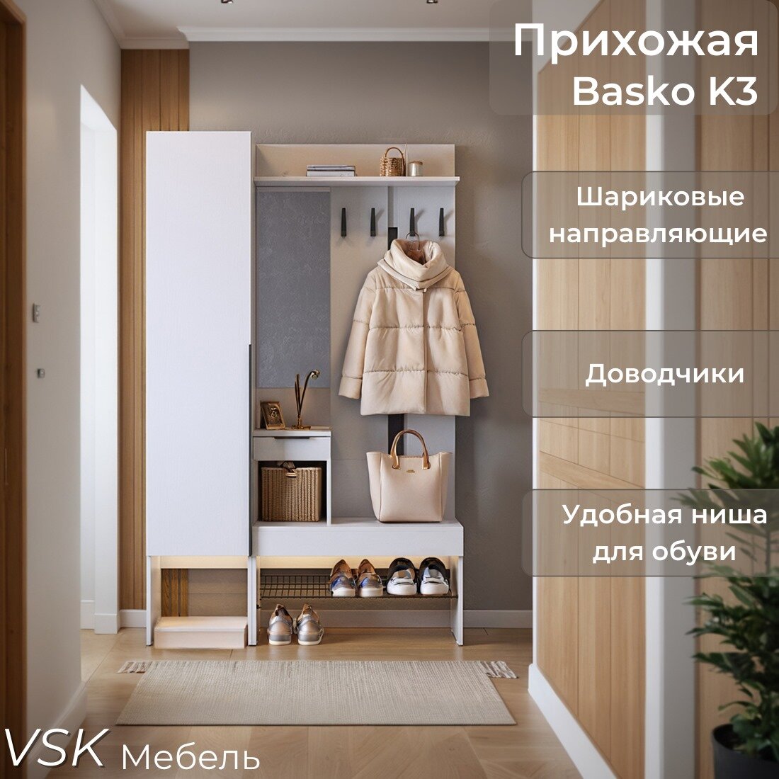 Отзывы на Прихожая Basko К3, комплект мебели в прихожую, Белое дерево, 120х195х34,9 см (ШхВхГ)