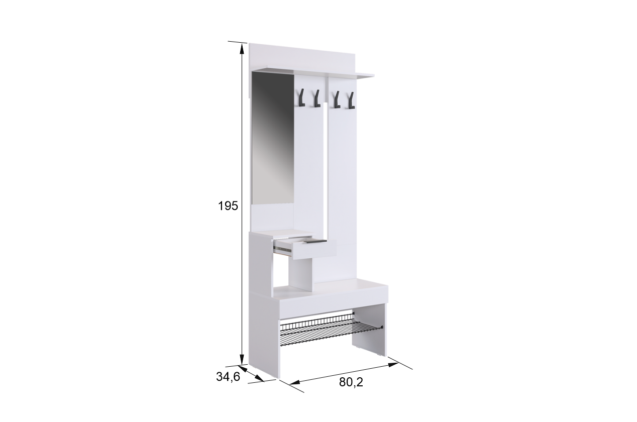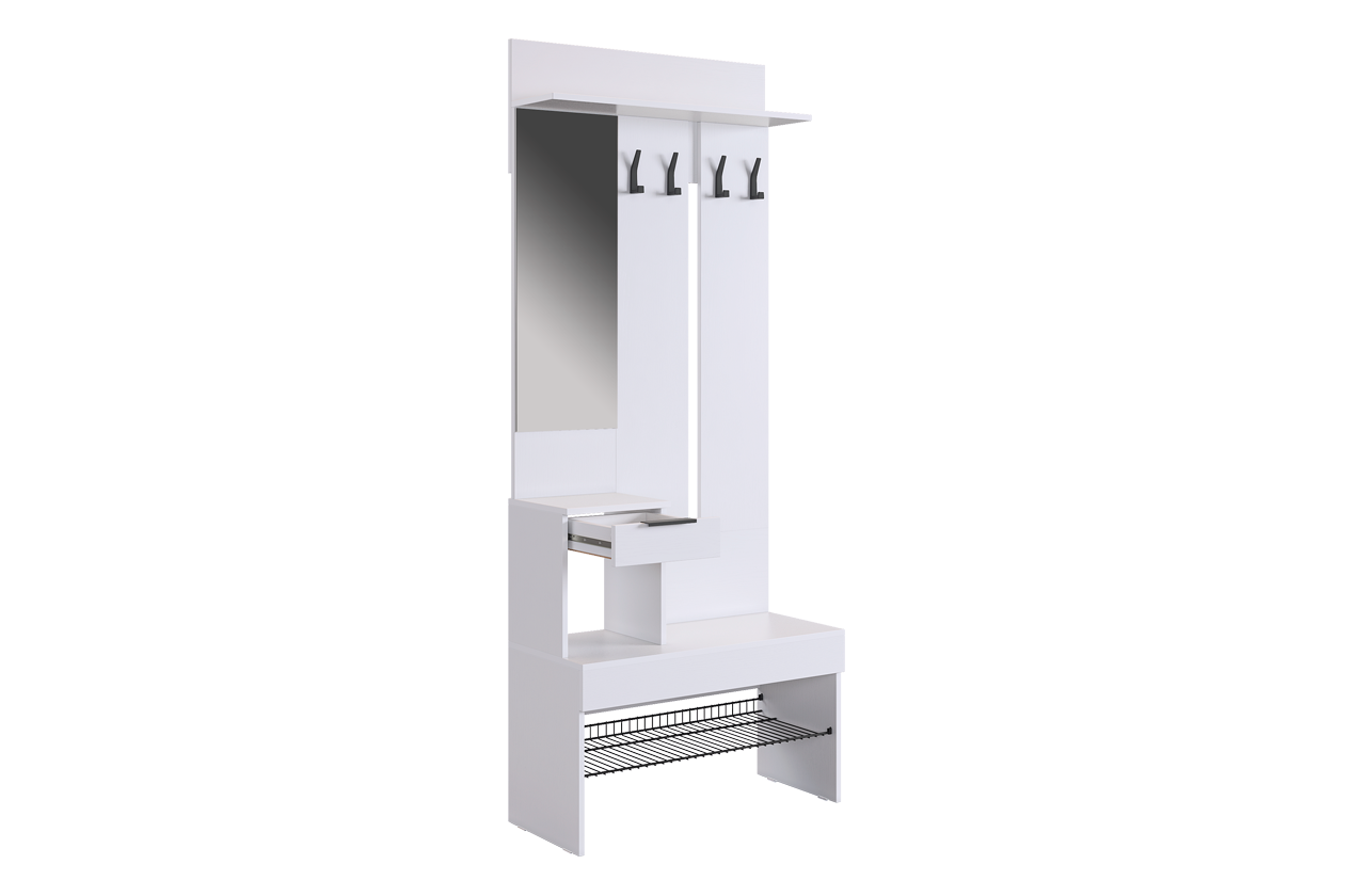 10 цен на Узкая модульная прихожая "Баско", цвет Белое дерево, 80*35*195 см, Mebelson