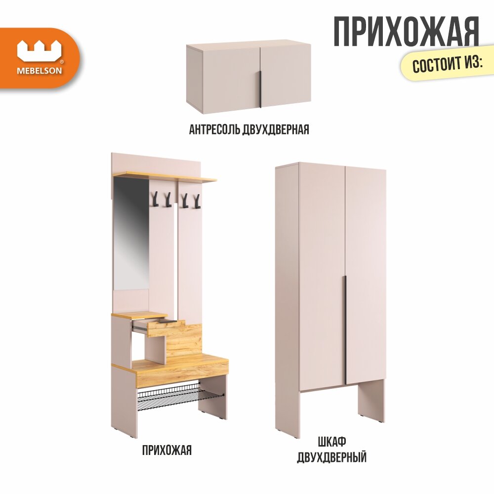 10 цен на Модульная прихожая "Баско" К5, цвет Кашемир/дуб крафт золотой, 160*35*235 см, Mebelson