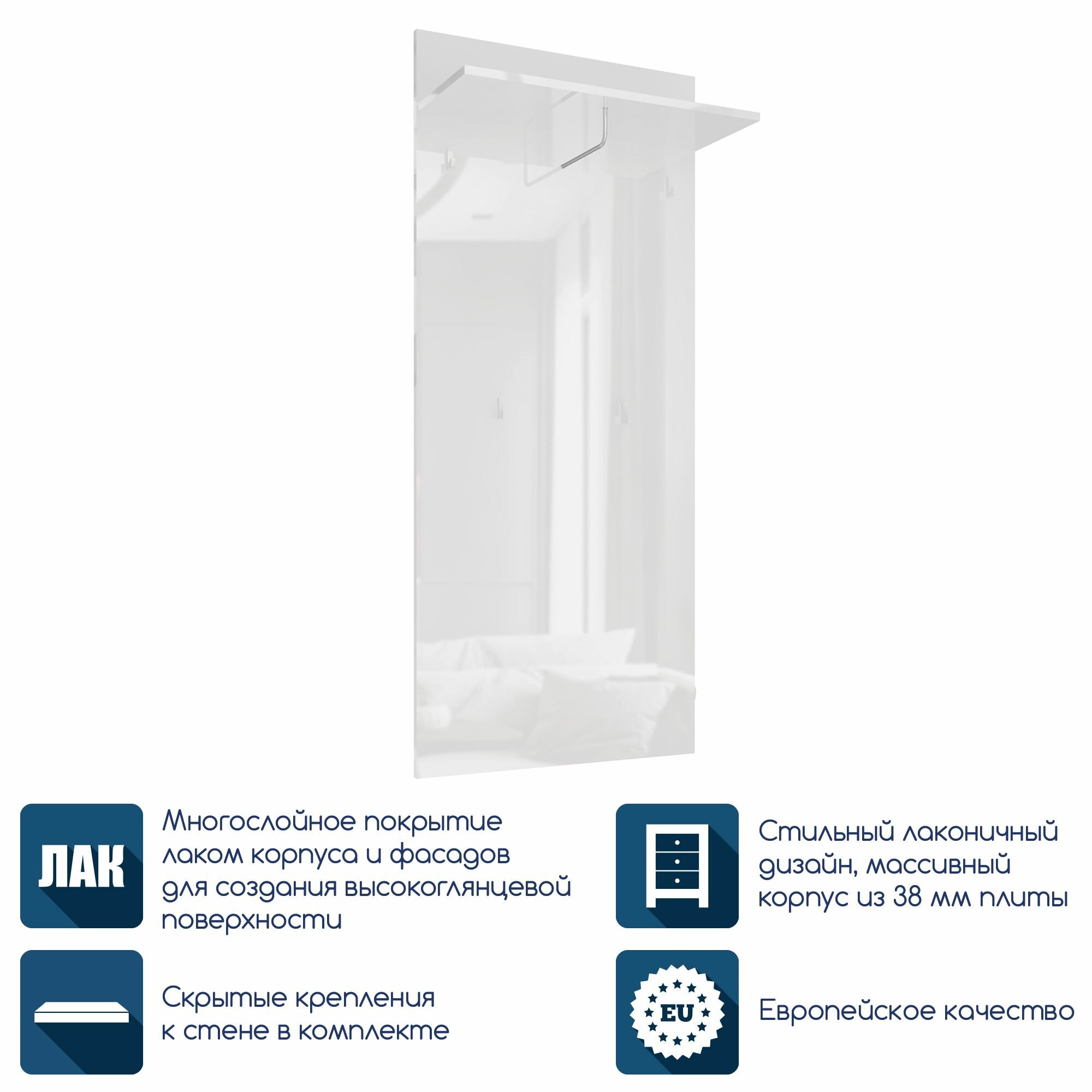 Вешалка с полкой в прихожую Beneli спейс, настенная, Белый глянец, 64,8х25,6х149,5 см, 1 шт. информация: