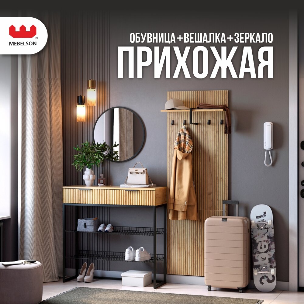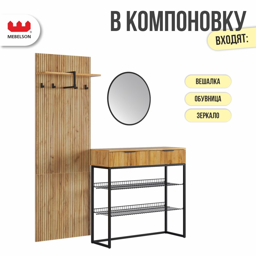 Отзывы на Прихожая "Мебельсон К2", ЛДСП дуб крафт золотой/черный муар/черный, 155,2*33,5*175 см.