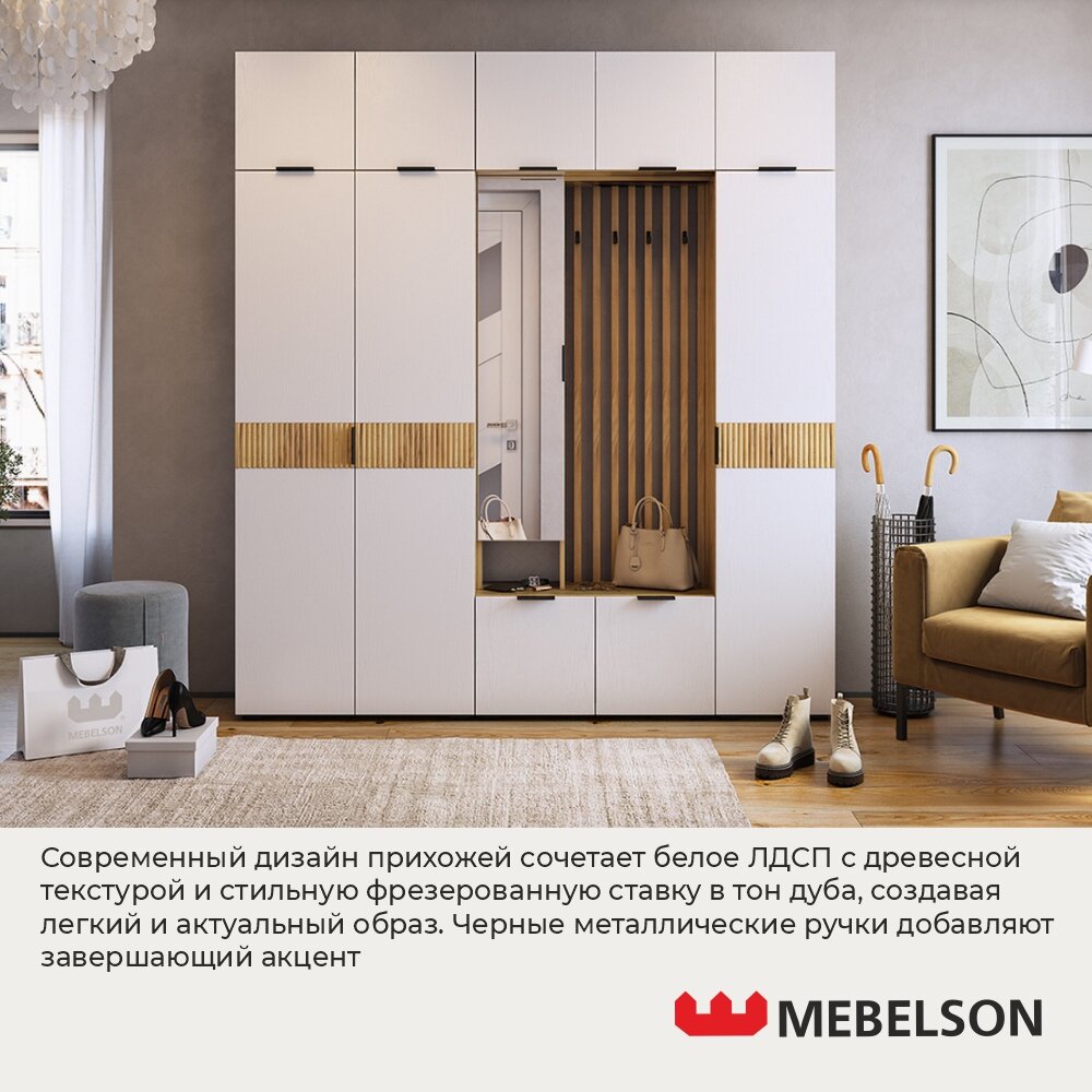 10 цен на Узкая модульная прихожая "Бери", дуб крафт золотой/белое дерево, 80х35х182,6 см, Mebelson