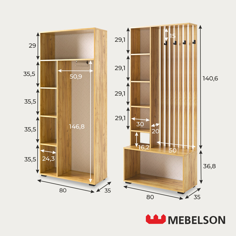 10 цен на Модульная прихожая "Бери К3", дуб крафт золотой/белое дерево, 160х35х182,6 см, Mebelson