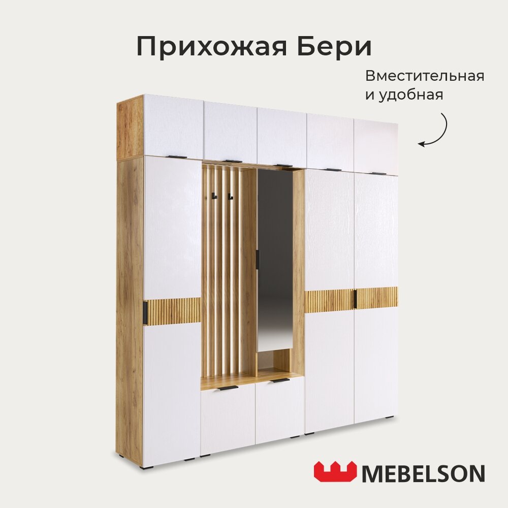 10 цен на Модульная прихожая "Бери К1", дуб крафт золотой/белое дерево, 200х350х222,6 см, Mebelson