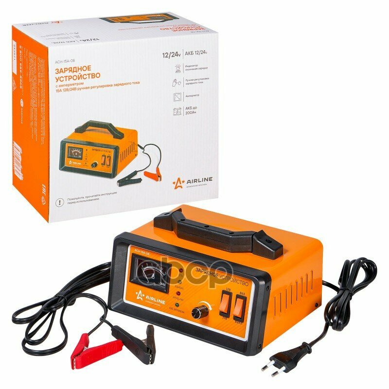 Зарядное Устройство Airline 12/24 В 15 A Амперметр, Ручная Регулировка Тока, Импульсное AIRLINE арт. ACH15A08