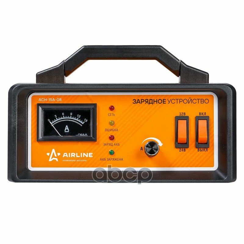 AIRLINE ACH-15A-08 Зарядное устройство 0-15А 12В/24В, амперметр, ручная регулировка зарядного тока, импульсное (ACH-15A 1шт 4 510 ₽