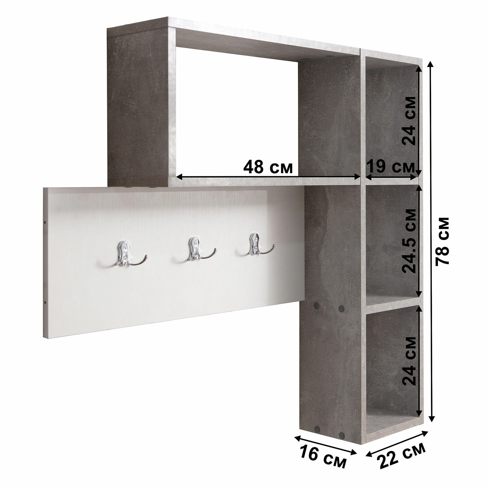 Вешалка LETTA Милан, настенная, ЛДСП, 3 крючка, серая бетон, 85 см х 78 см информация:
