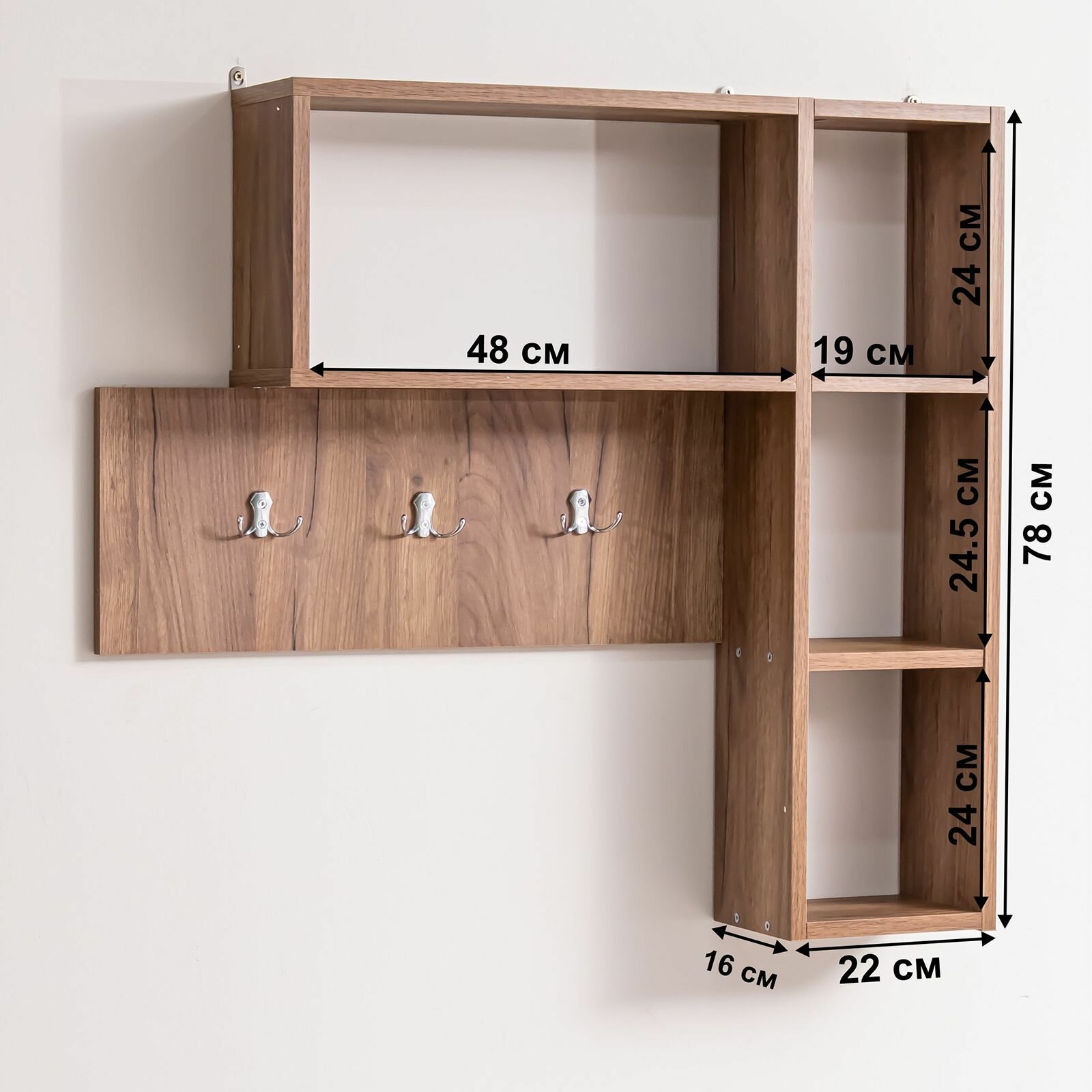 Вешалка Милан настенная для одежды с полками, ЛДСП Крафт табачный информация: