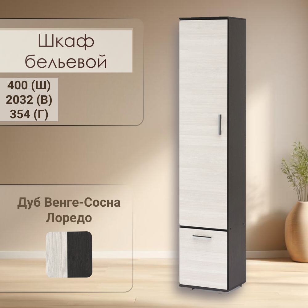 10 цен на Пенал для белья МК Эра Ника, распашные двери, ЛДСП, 40х35х203 см, венге/лоредо