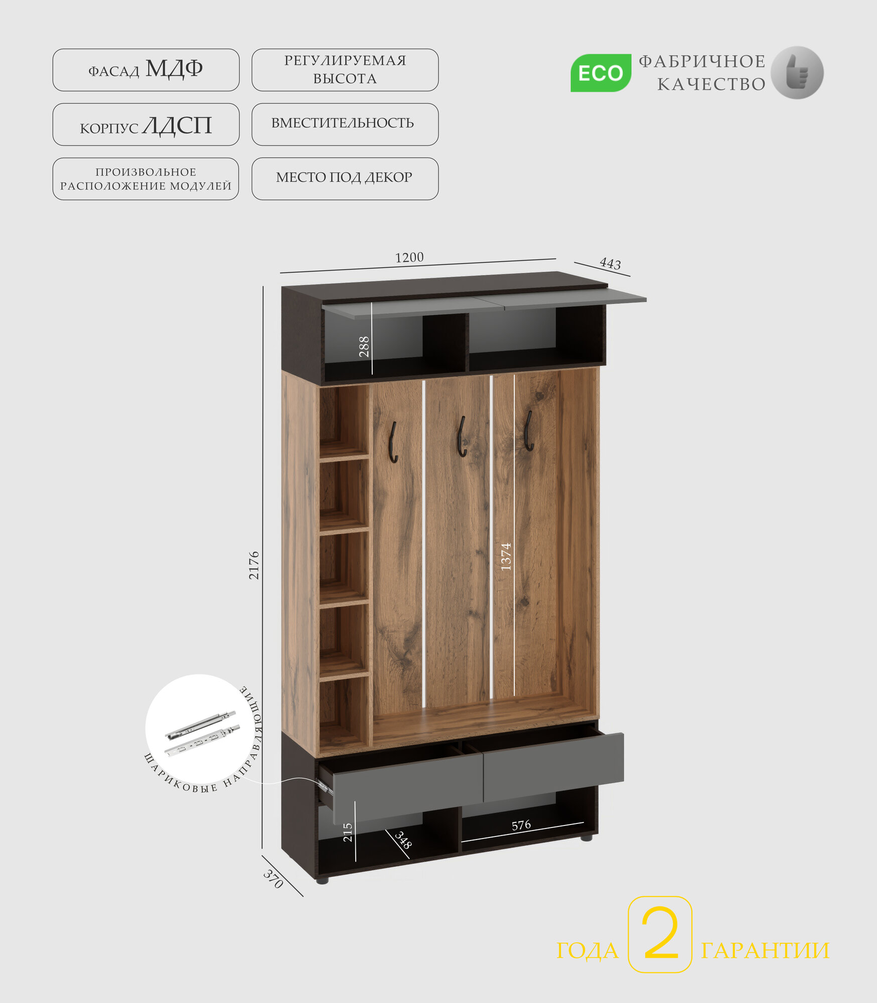 Прихожая "BOSA" К8 Венге/Дуб вотан/Графит софт МДФ информация: