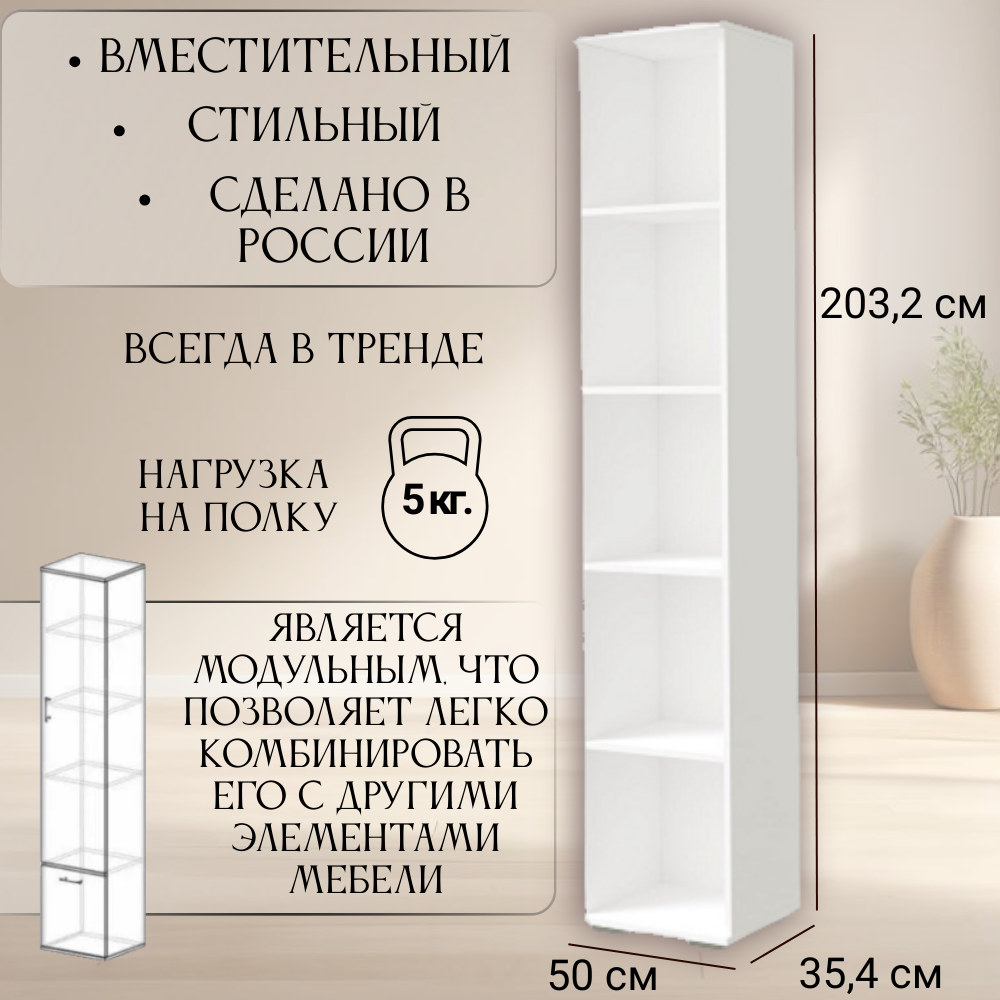 Шкаф-пенал Ника, цвет белый, ЛДСП, 2 двери, 5 полок, 50 см x 35 см x 203 см информация:
