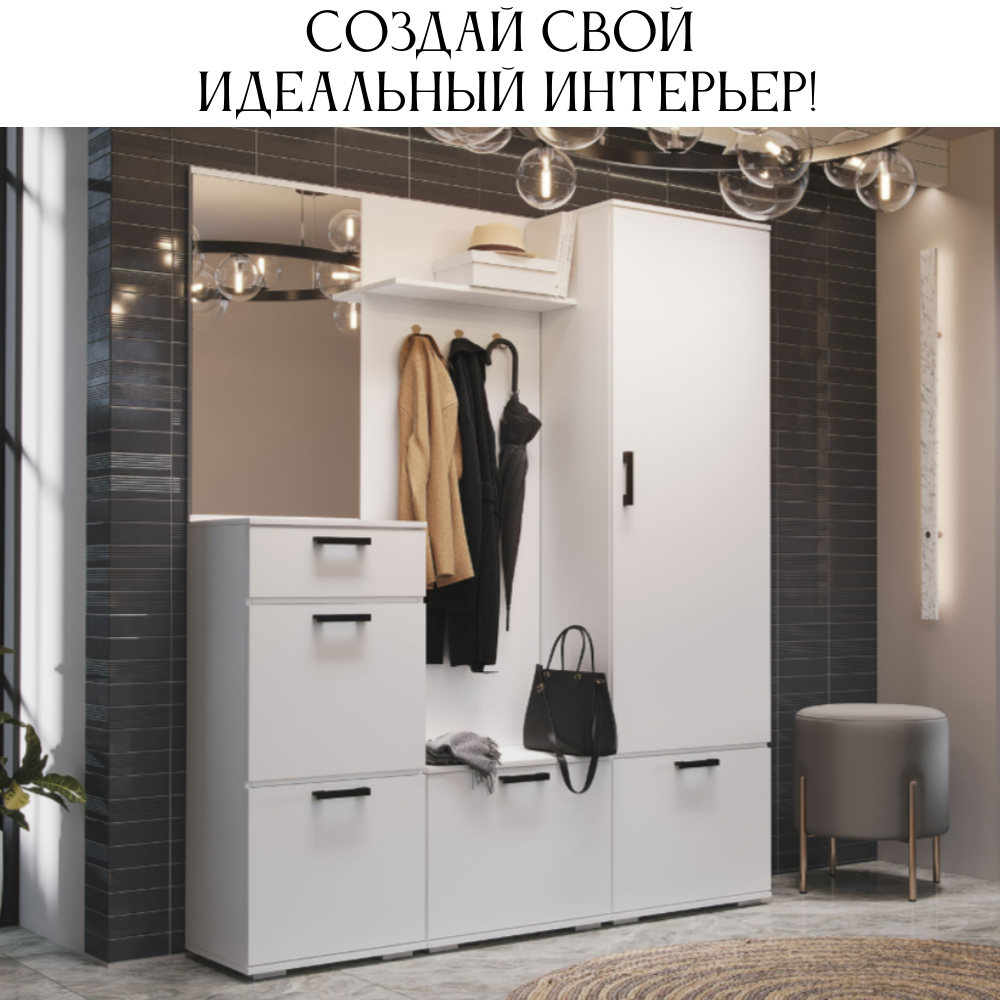 Прихожая Ника, вешалка с зеркалом, ширина 91 см, ЛДСП, цвет белый гладкий 7 990 ₽
