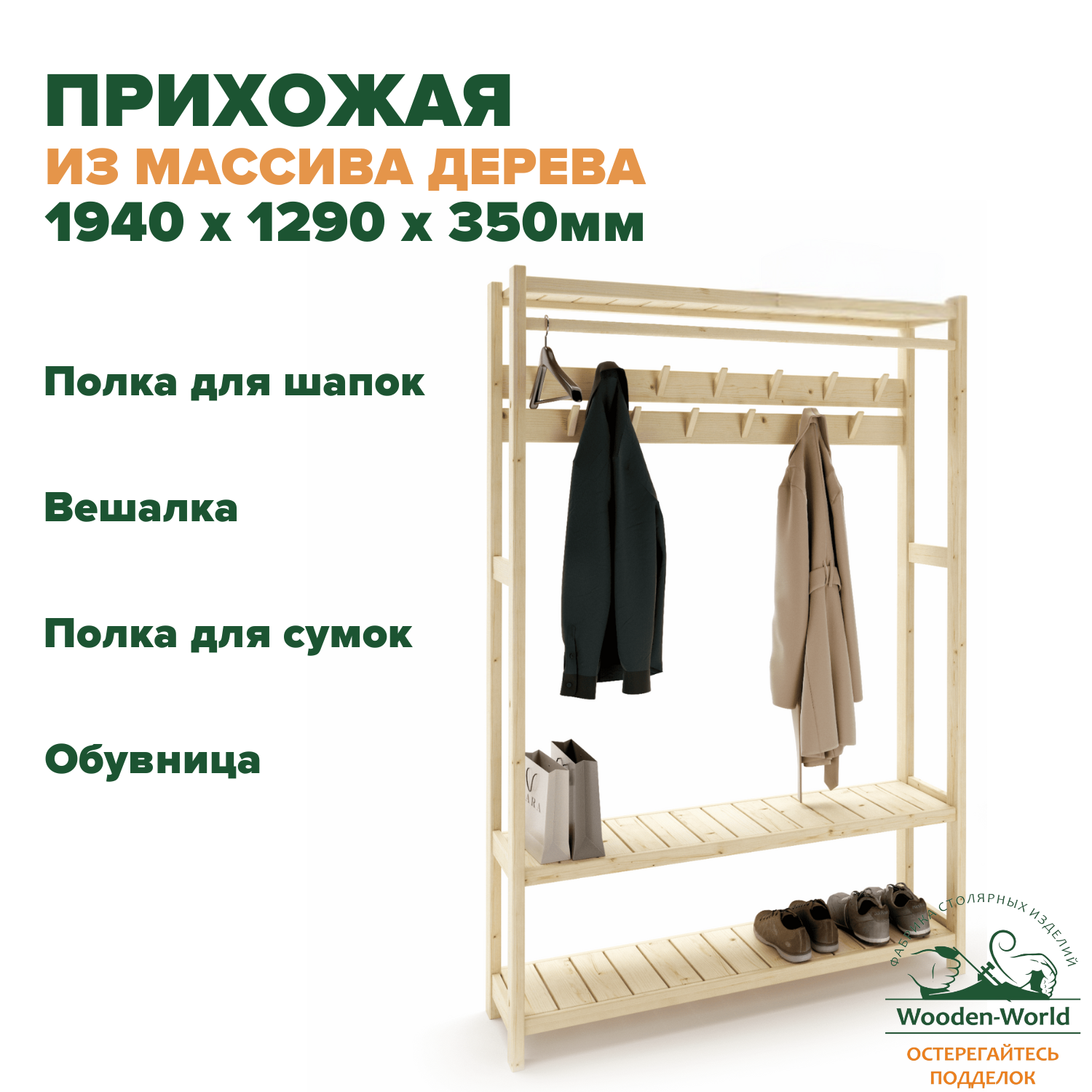 Прихожая мебель в коридор деревянная 194х129х35см, вешалка напольная в Классическом стиле информация: