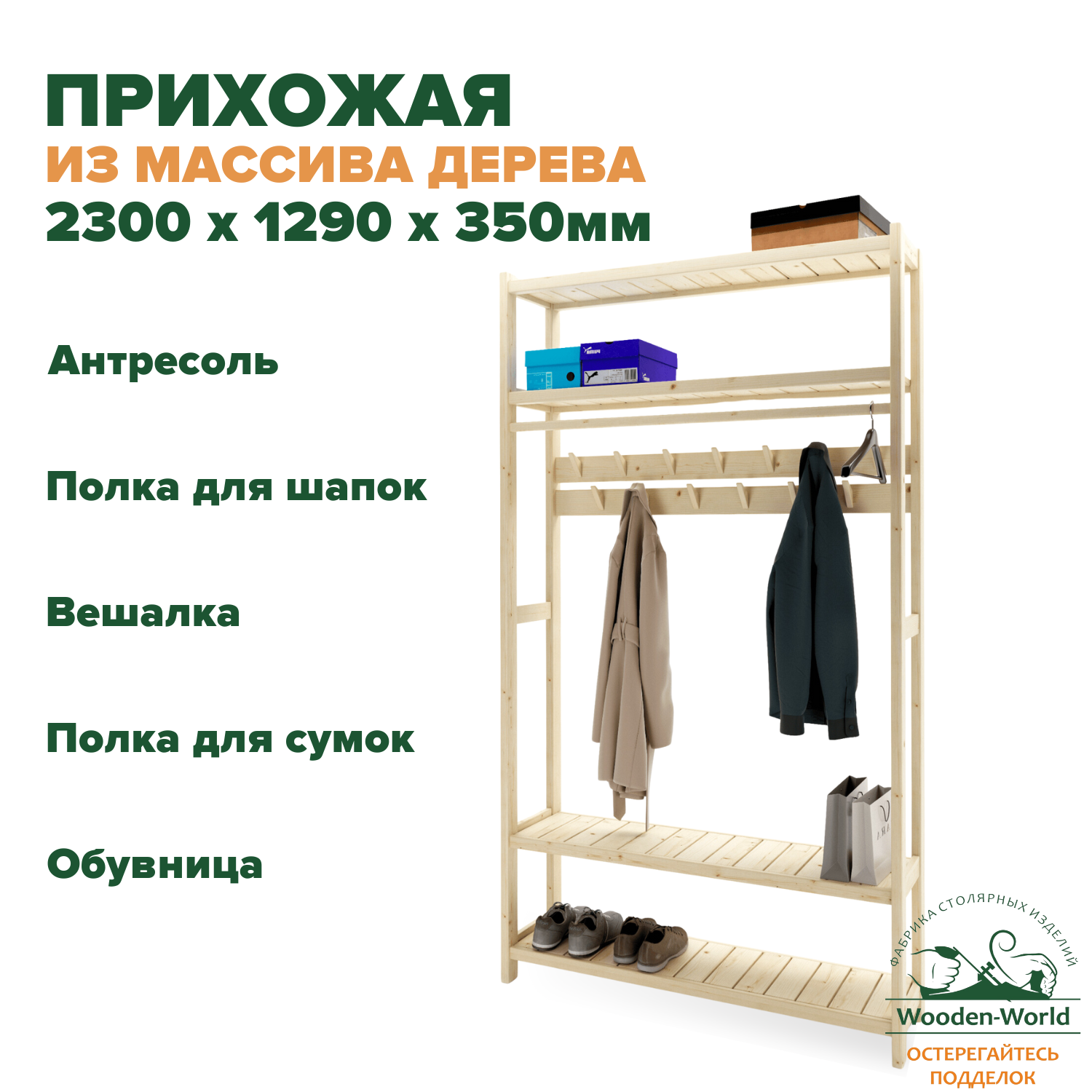 10 цен на Прихожая мебель в коридор деревянная 230х129х35см, вешалка напольная в Классическом стиле