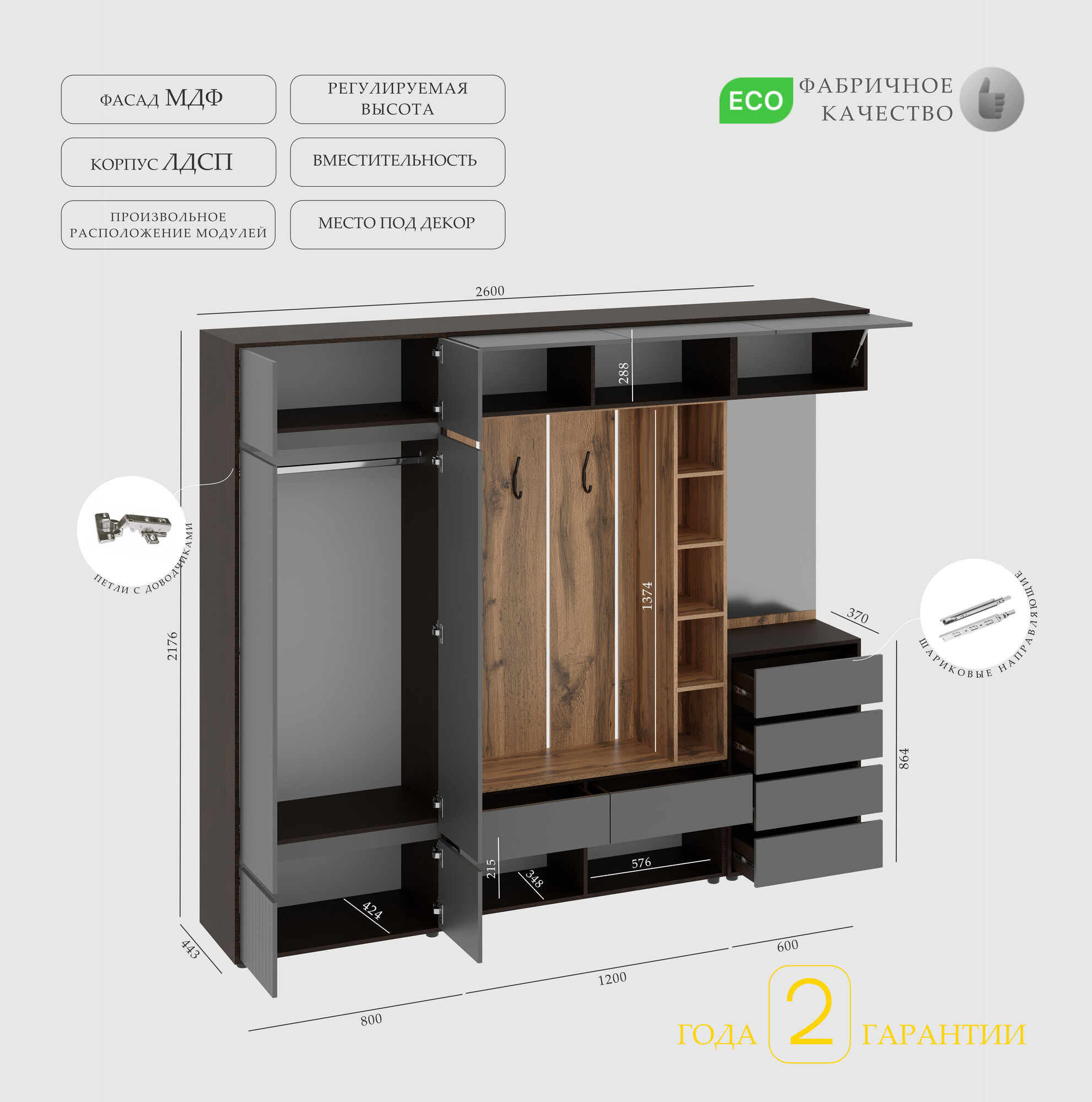 Прихожая "BOSA" К11 Венге/Дуб вотан/Графит софт МДФ информация: