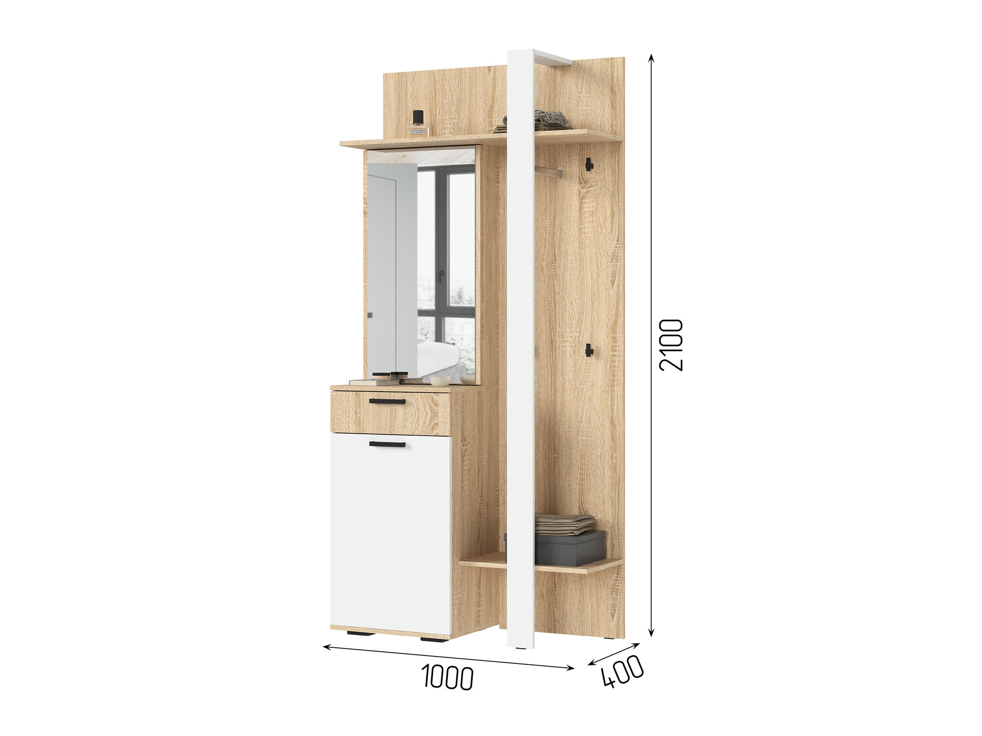 Прихожая с зеркалом САНСА ПР-01 (1000х2100х400) цвет Дуб сонома - Белый информация: