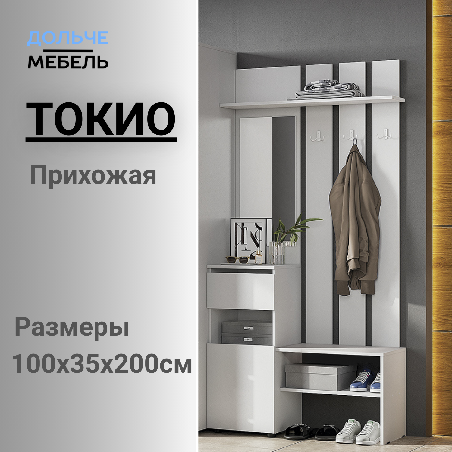 Прихожая мебель в коридор Арника Токио для узкого коридор 100х35х200 см, цвет белый информация: