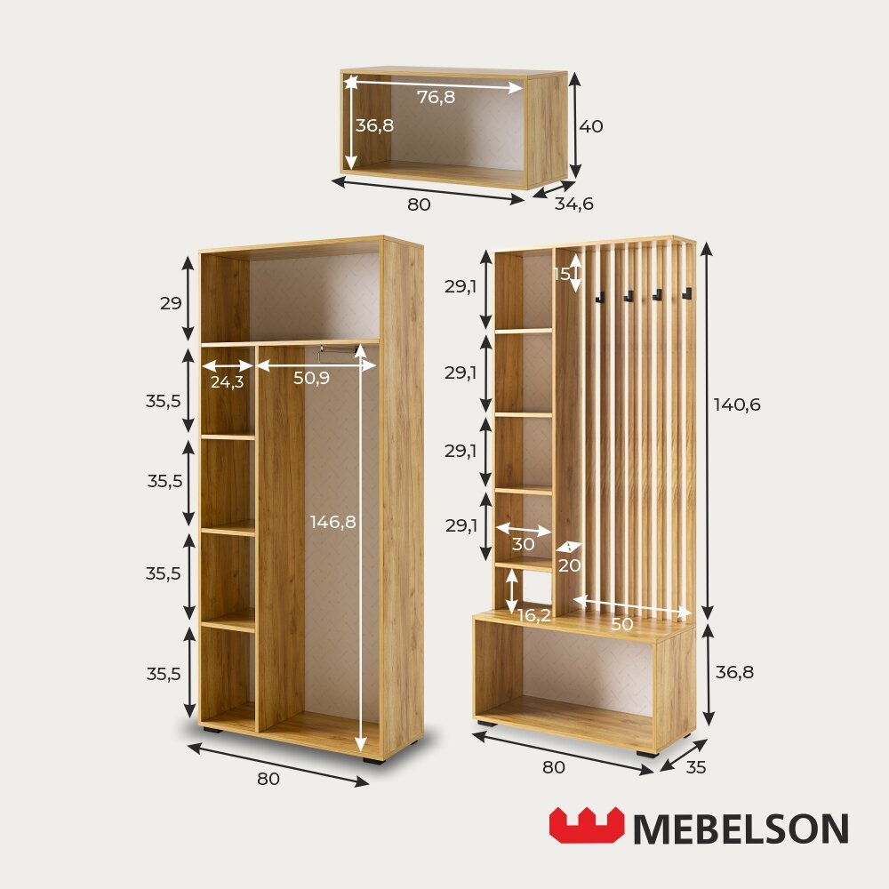 10 цен на Модульная прихожая "Бери К4", дуб крафт золотой/белое дерево, 160х35х222,6 см, Mebelson