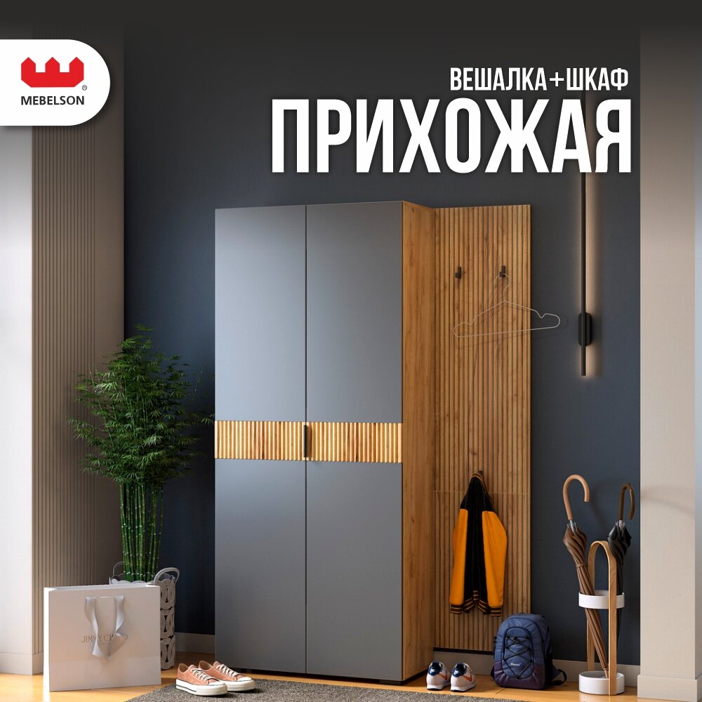 10 цен на Прихожая "Мебельсон К7", ЛДСП дуб крафт золотой/графит, 120*35*182,6 см.