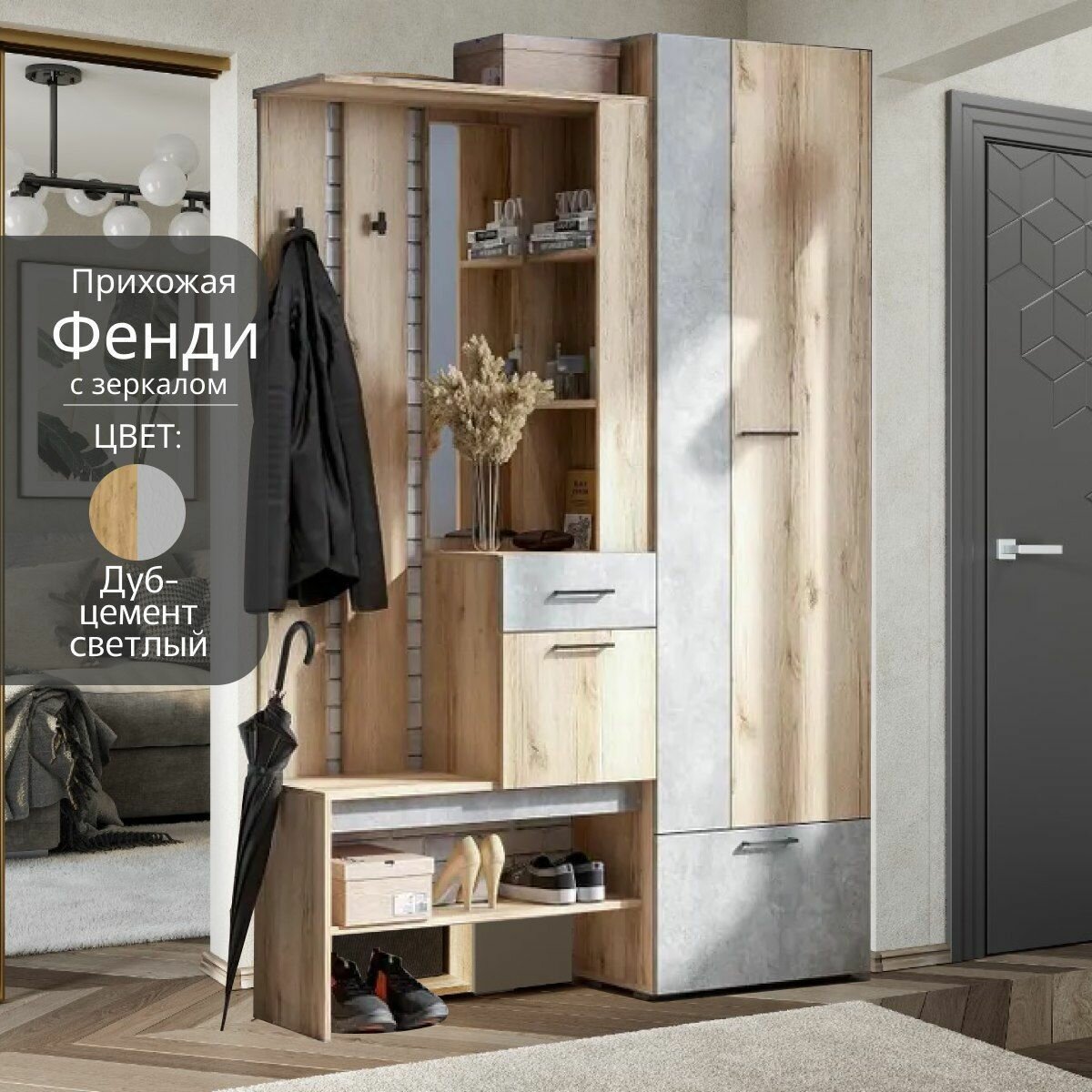 Отзывы на Прихожая Фенди 1 дуб делано/цемент светлый, размер 142х35.2х205.6 (сборка универсальная)
