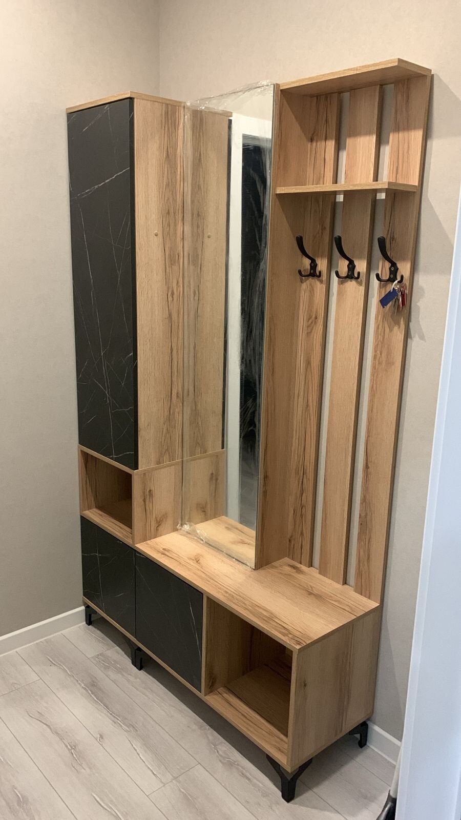 Отзывы на Луксор-12 Вешалка Дел. свет./камень Пьетра черный (в узкий коридор, прихожую, с зеркалом, крючками, на ножках, обувница)