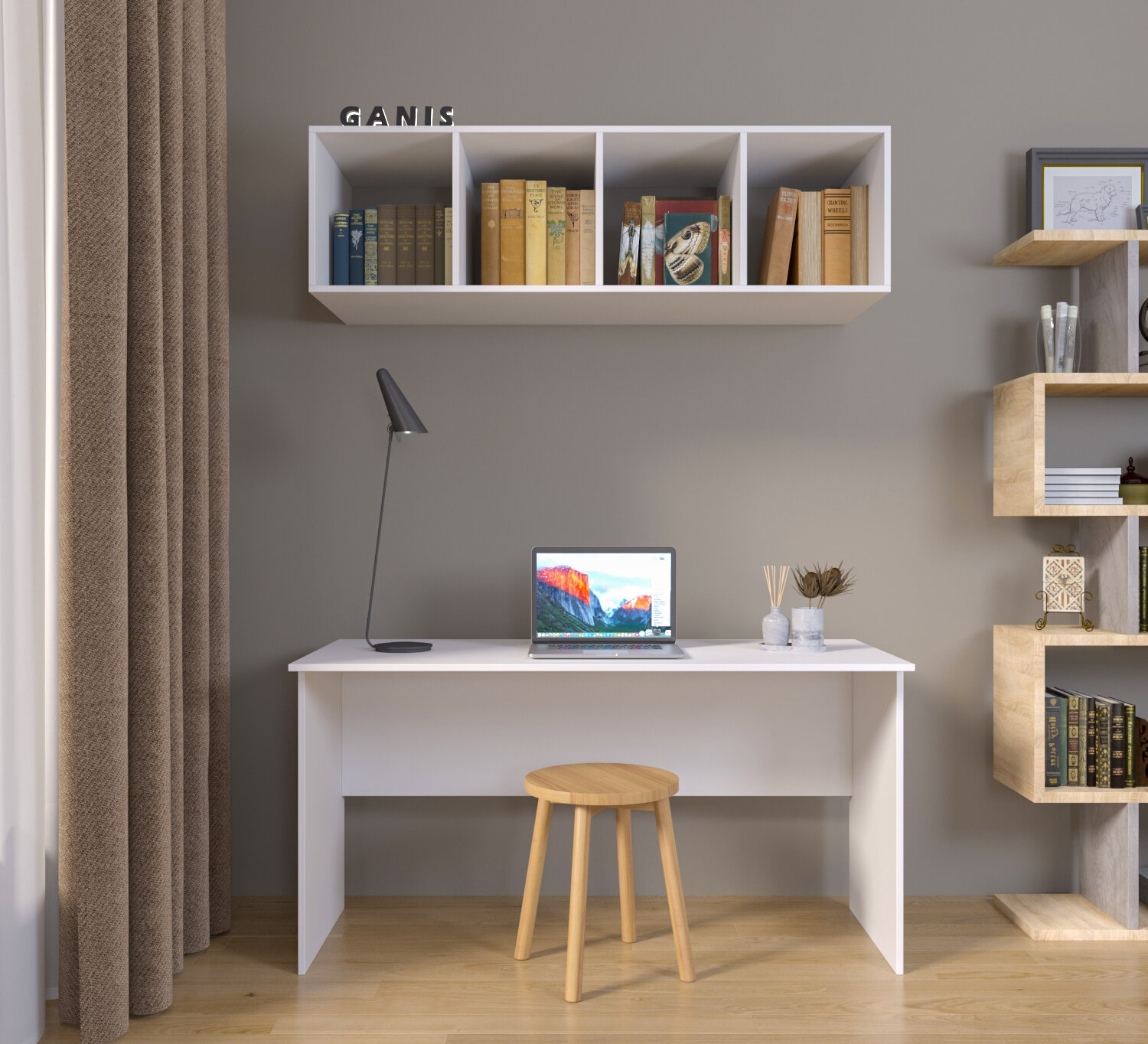 Стол письменный, компьютерный лофт INCUBE D004.140. NAT, дуб золотой, 140х60х75см, с органайзером, ЛДСП, металл