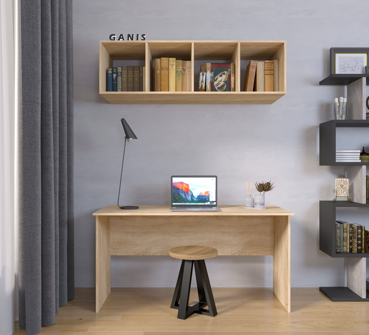 Стол письменный, компьютерный лофт INCUBE D004.140. NAT, дуб золотой, 140х60х75см, с органайзером, ЛДСП, металл