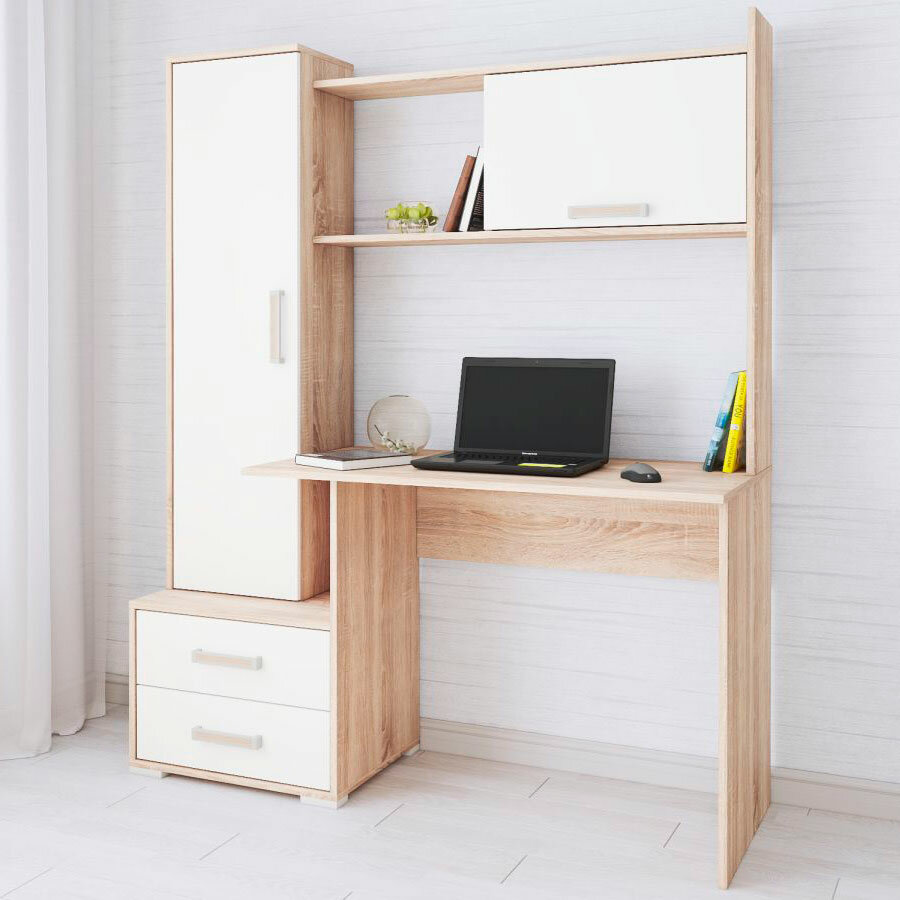 10 цен на Стол компьютерный, с надстройкой, с ящиками, ЛДСП, Дуб сонома/белый, 140*171*55 см, Квартет-9