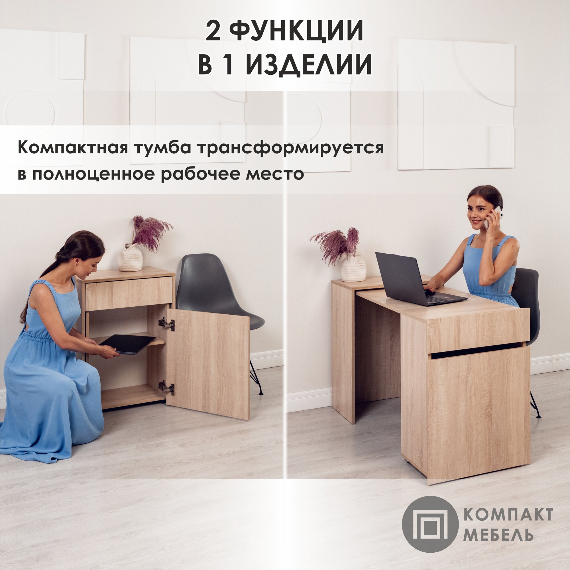 10 цен на Стол трансформер письменный дуб Сонома, для швейной машины, ноутбука, маникюра Компакт-Мебель