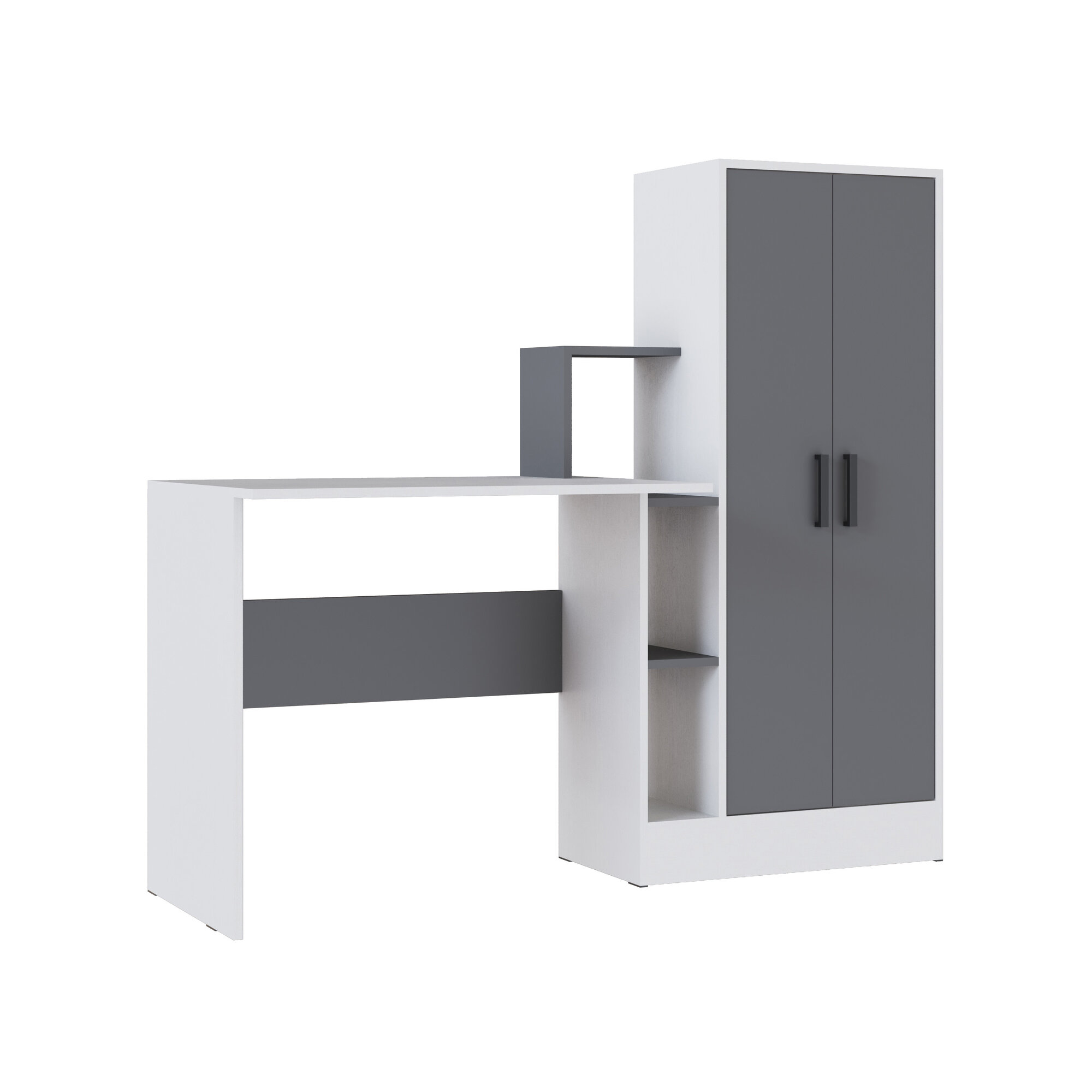 Стол компьютерный письменный для школьника, прямой стол с полками и шкафом СКМ-1, 150х60х135 см, Белый/графит серый информация: