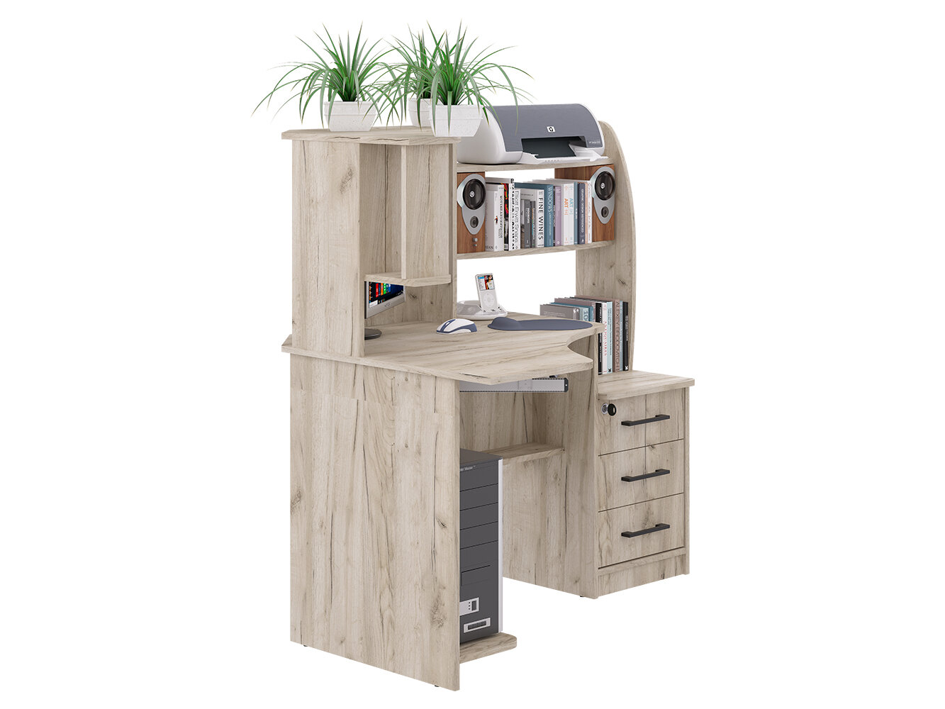 10 цен на Стол компьютерный КС-39 угловой с надстройкой и ящиками с замком , Крафт серый