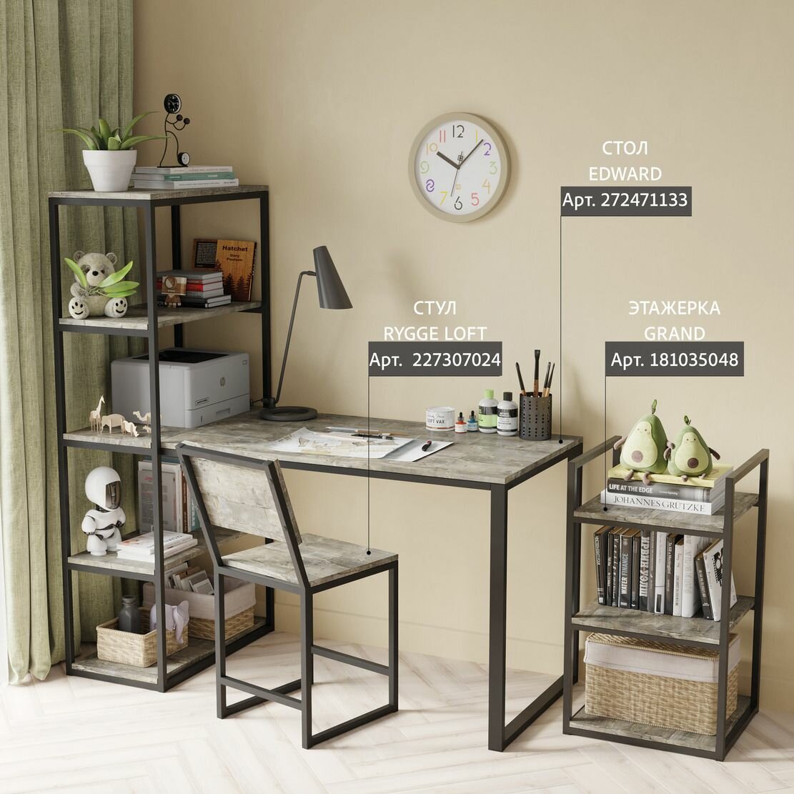 Стол письменный SKOLA loft, светло-серый, компьютерный, офисный, парта для школьника, 110х55х76.5 см, гростат 9 300 ₽