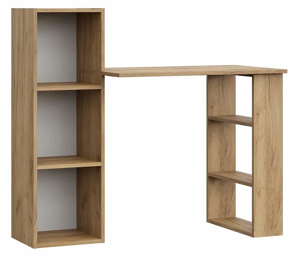 Компьютерный, письменный стол Альфа с ящиками, 106х50.4х76 см, Дуб Крафт золотой / Белый матовый