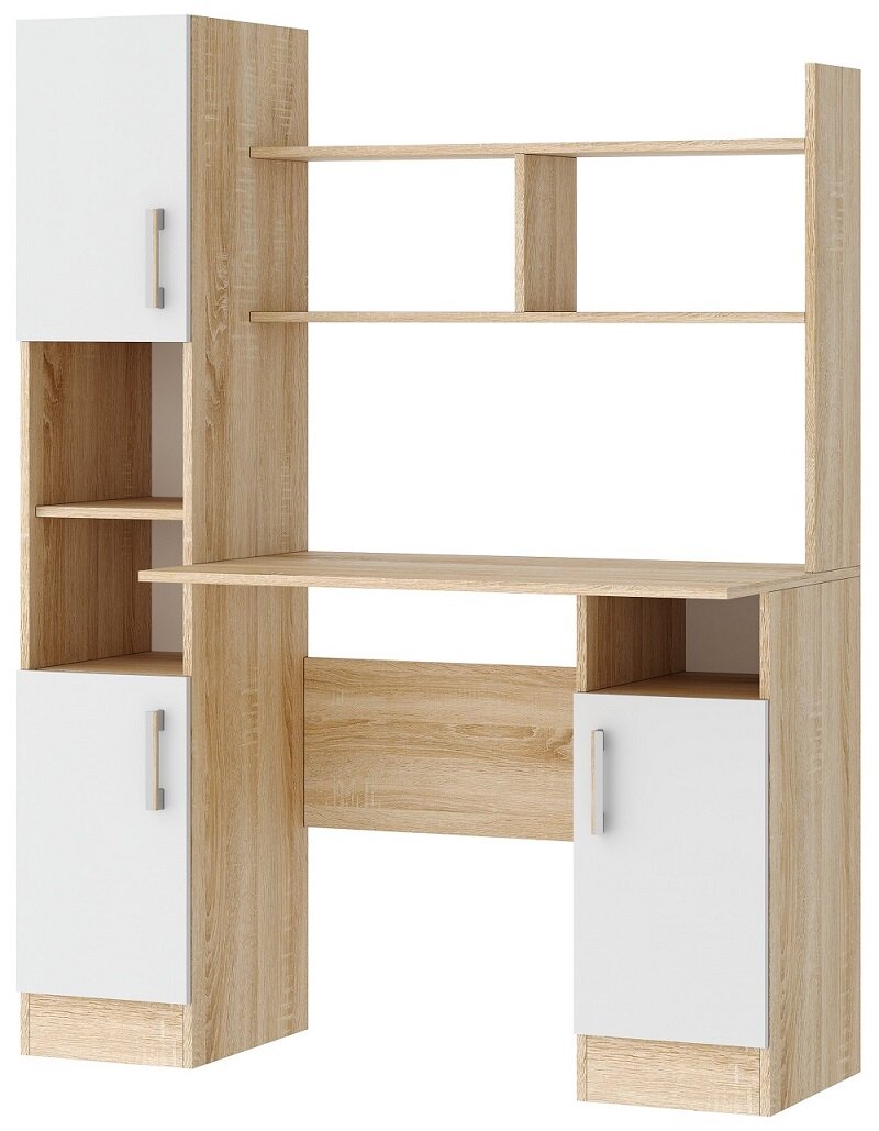 10 цен на Компьютерный стол ПКС-6 Сонома/Белый глянец, ЛДСП, с открытыми и закрытыми полками, 1230х1600х570, ПАМИР