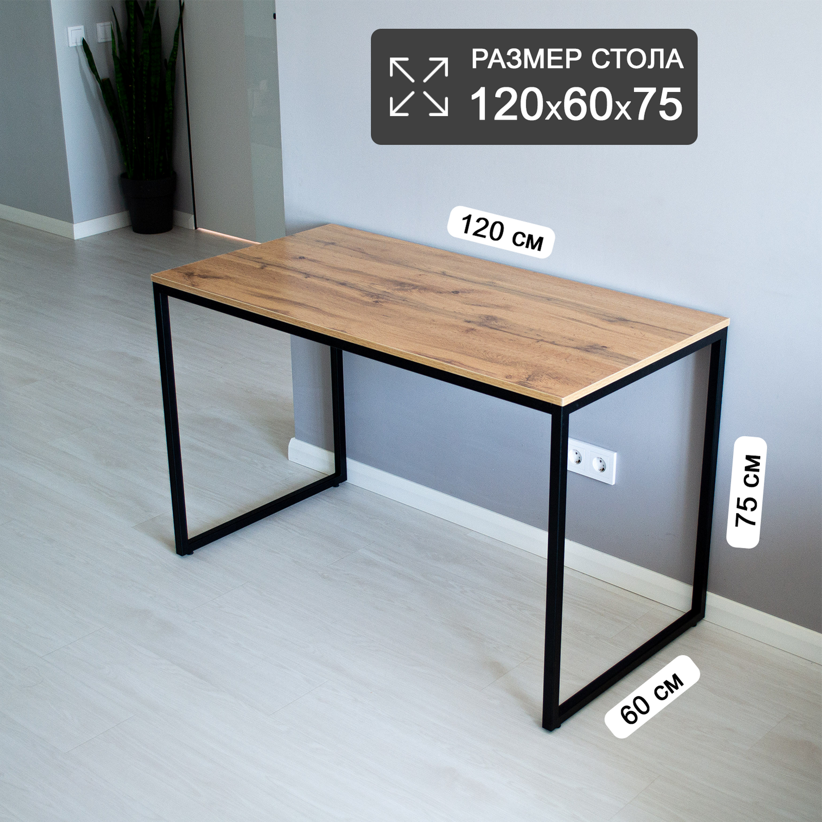 Стол рабочий кухонный письменный компьютерный обеденный лофт 120х60х75 см Черный/Дуб вотан информация: