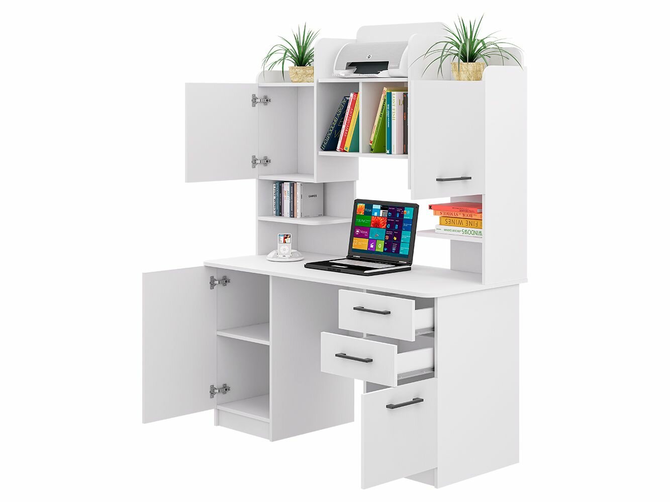 Стол компьютерный с надстройкой и ящиками КС-9, белый информация: