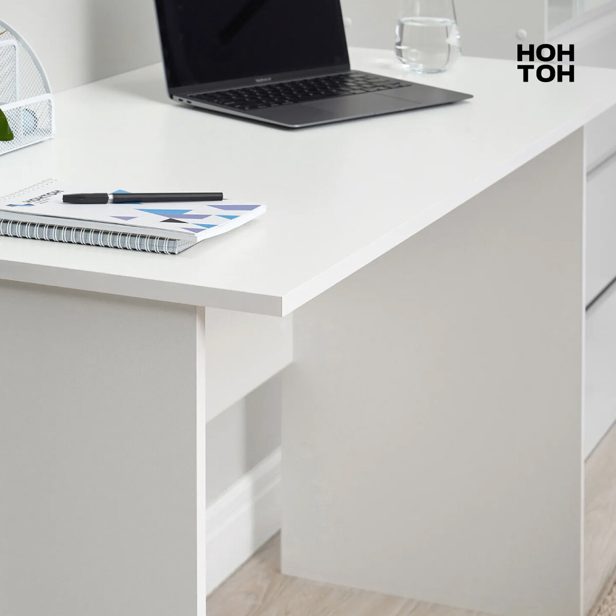 Стол письменный с ящиками Нонтон Ирма белый шагрень, 142x50x73 см 8 690 ₽