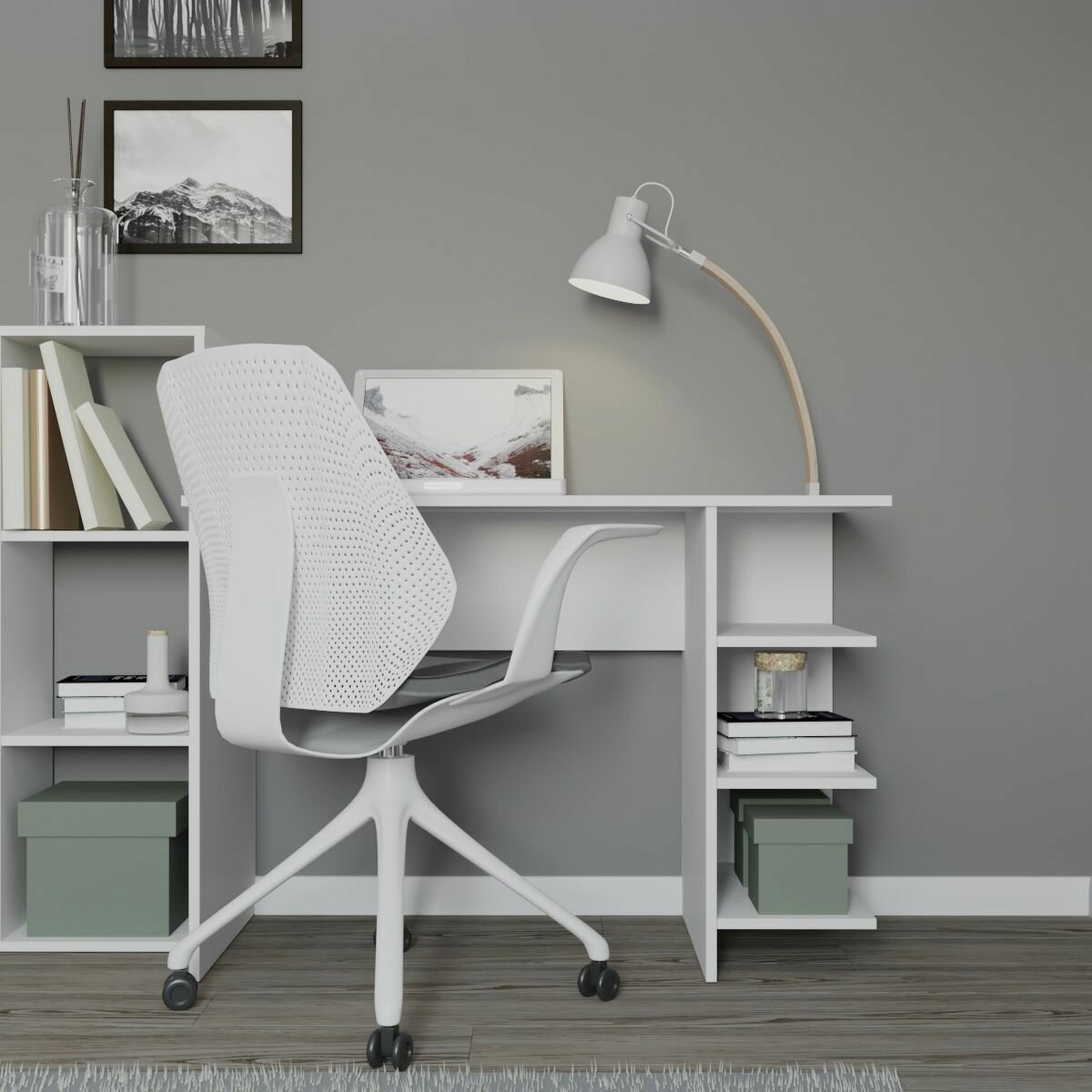 Письменный стол для компьютера в офис или школьника белый в стиле лофт с полками информация: