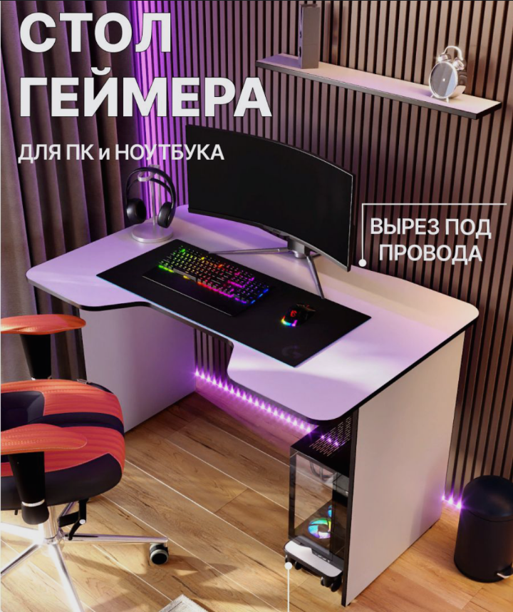 Отзывы на Игровой компьютерный стол AKTIVHITS, для геймеров, лдсп, кант 2мм.130х75х78 см. белый/черный.