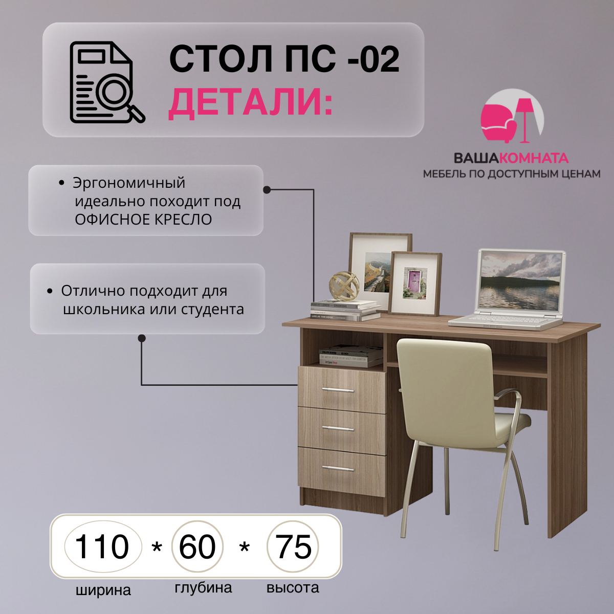 Отзывы на Стол письменный компьютерный для школьника ПС-02 с ящиками, прямой, ясень шимо светлый/ясень шимо темный