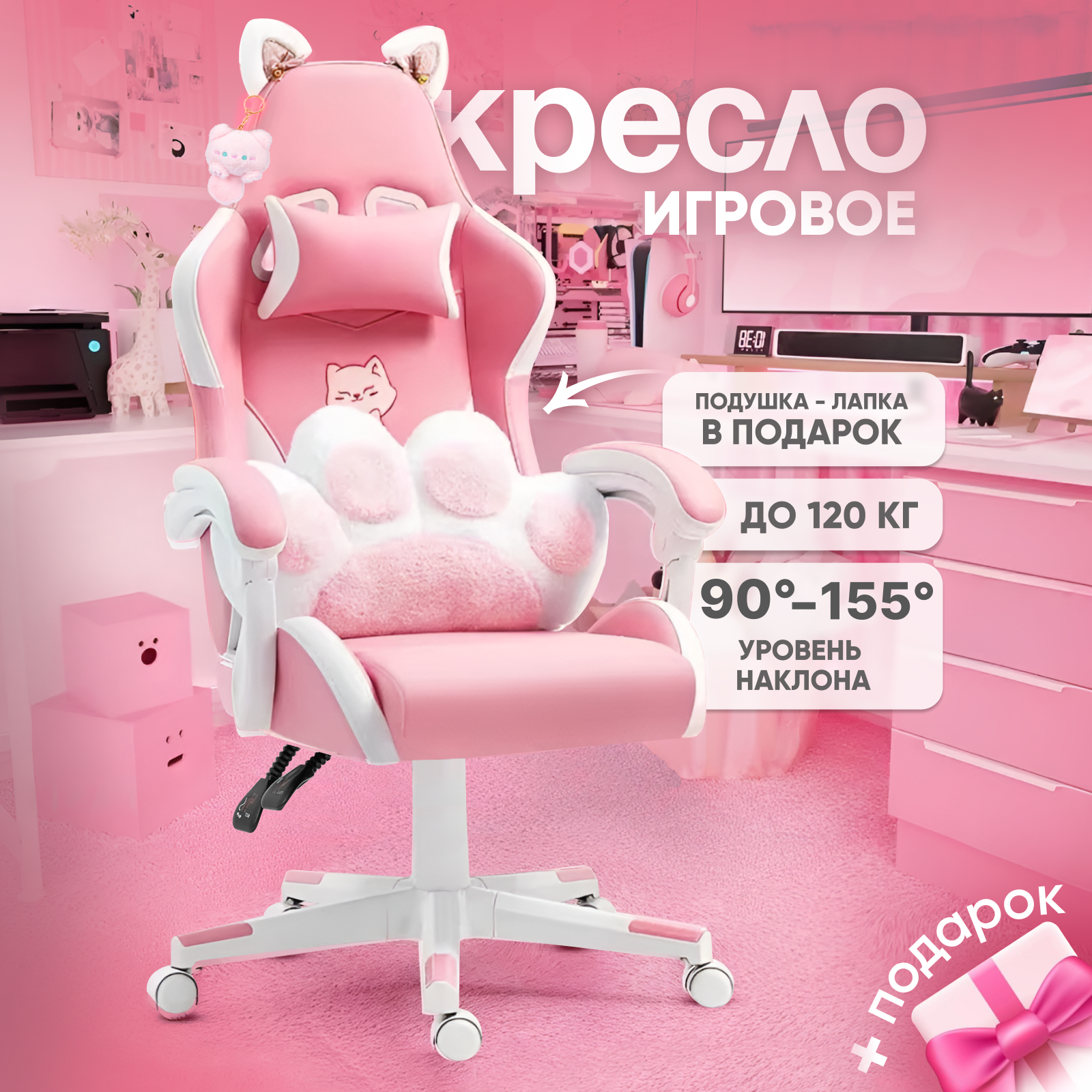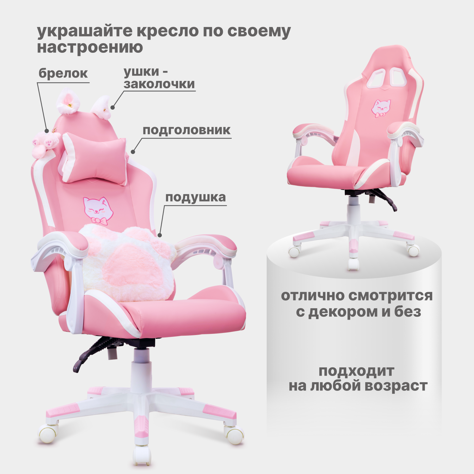 10 цен на Кресло компьютерное игровое розовое, геймерский стул для подростков с ушками, экокожа