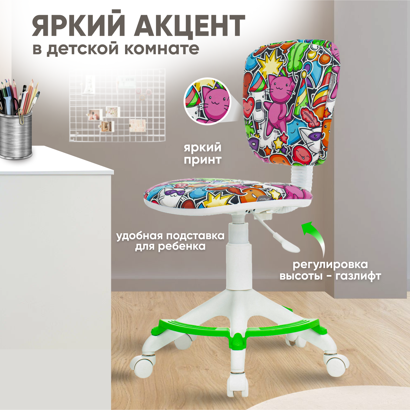 Кресло детское компьютерное на колесиках Бюрократ с подставкой для ног информация: