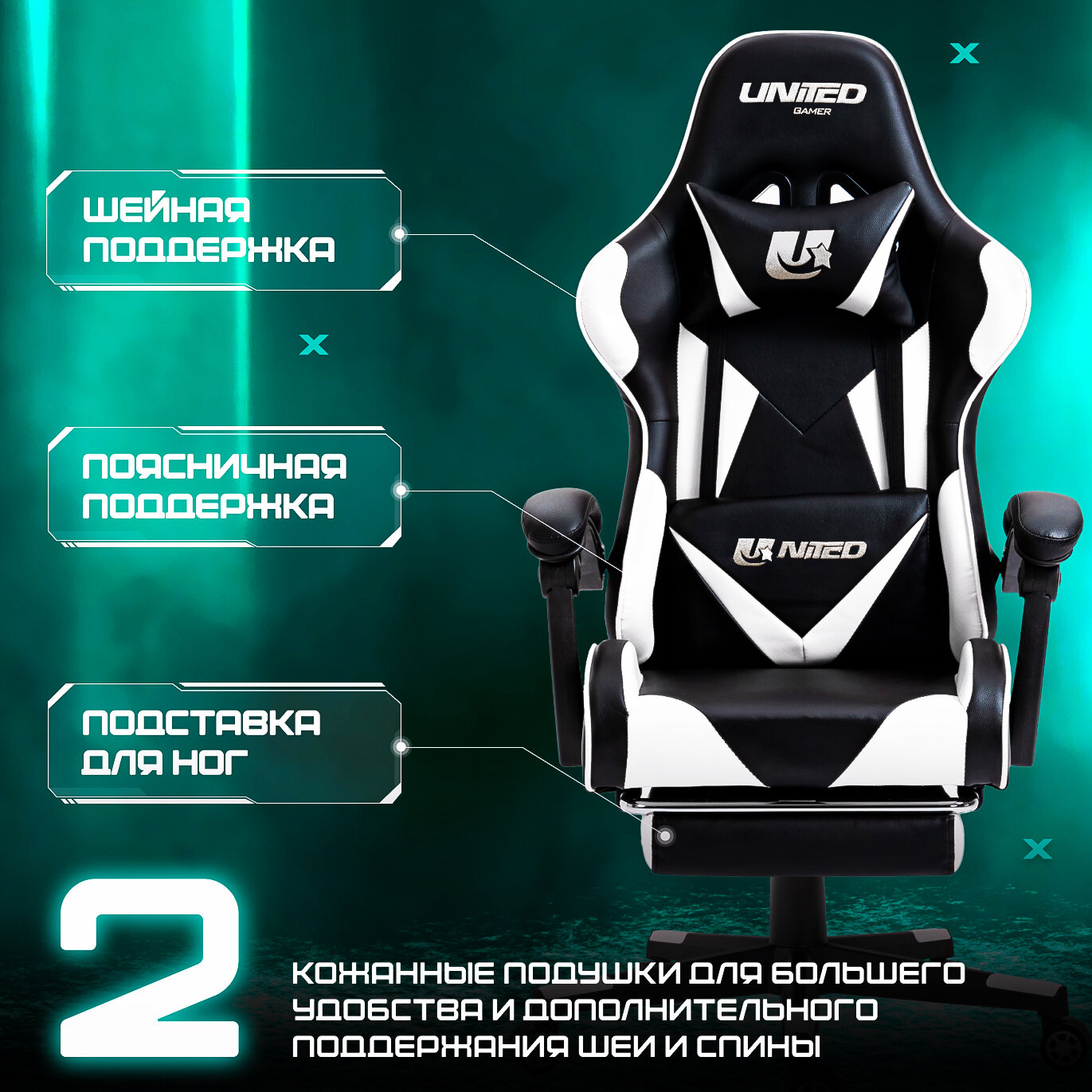 Кресло компьютерное UNITED GAMER GALAXY, с газлифтом и подставкой для ног, белое информация: