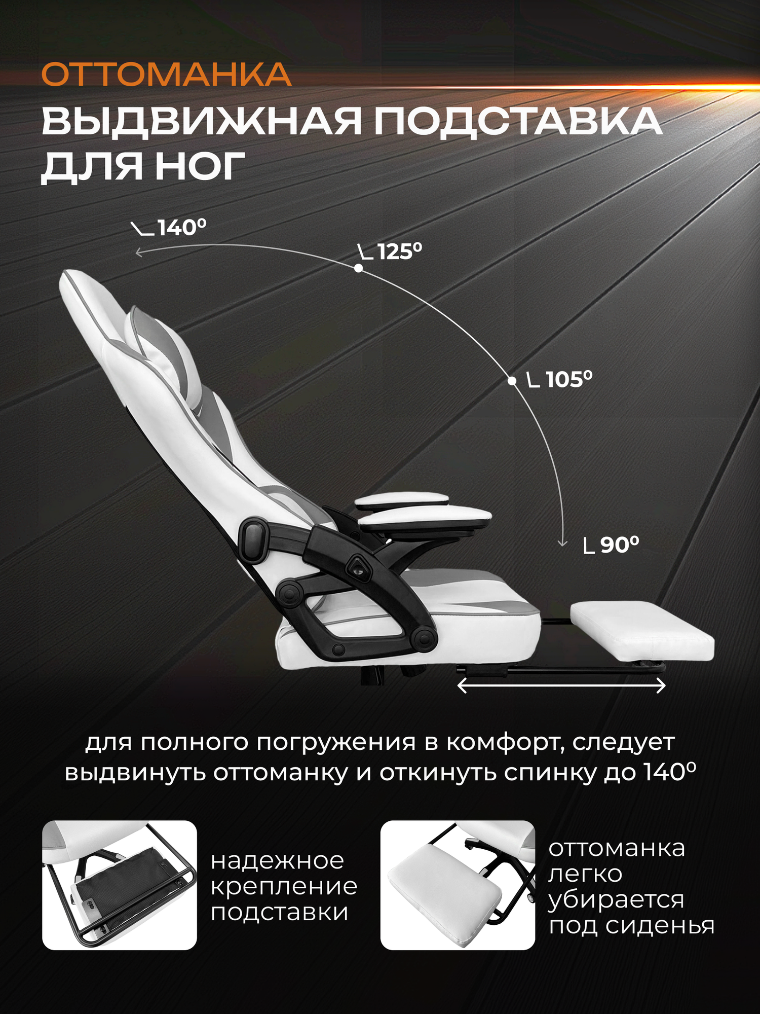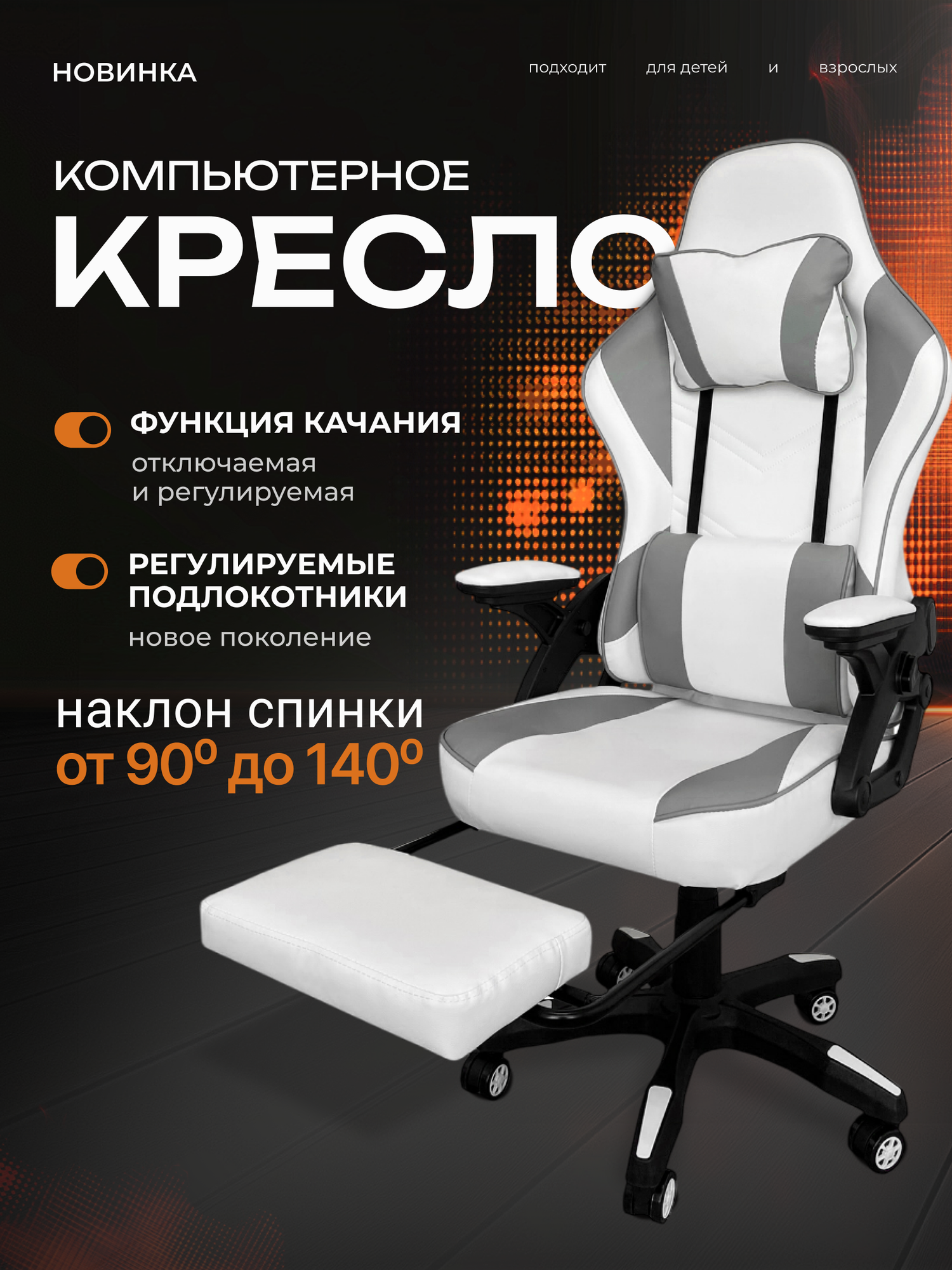 Кресло компьютерное с подставкой для ног , функция качания , цвет : белый ; светло-серый. информация: