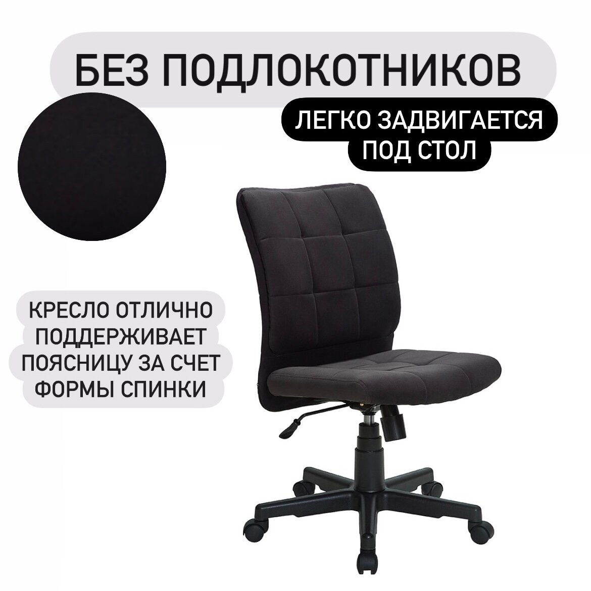 Кресло офисное без подлокотников, 395х420х720(940) мм, черное, ткань