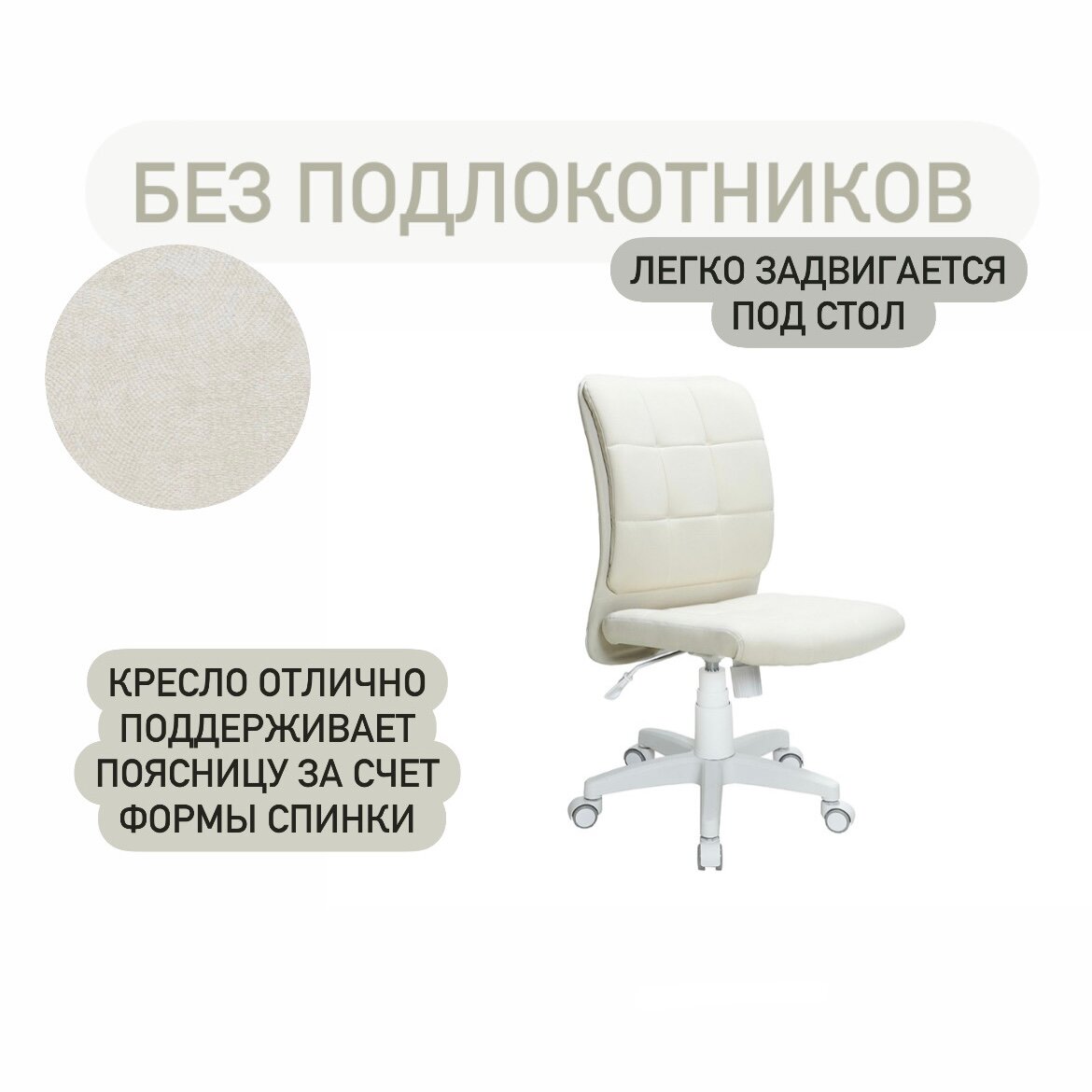 Компьютерное кресло офисный белый стул для школьника на колесиках кремовый информация: