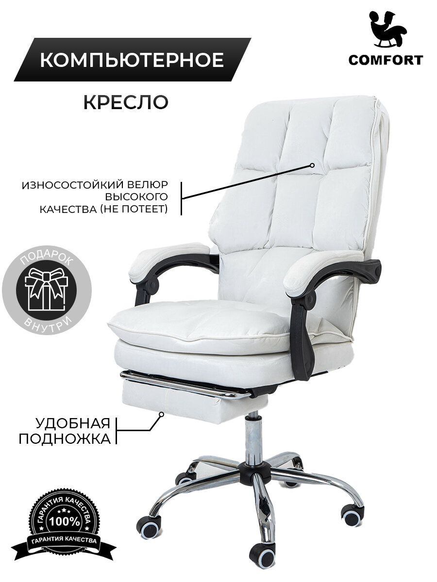 10 цен на Компьютерное офисное мягкое кресло белое велюр